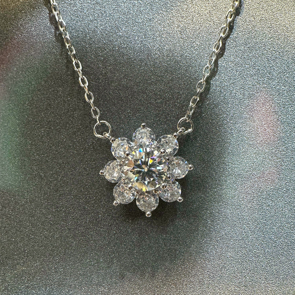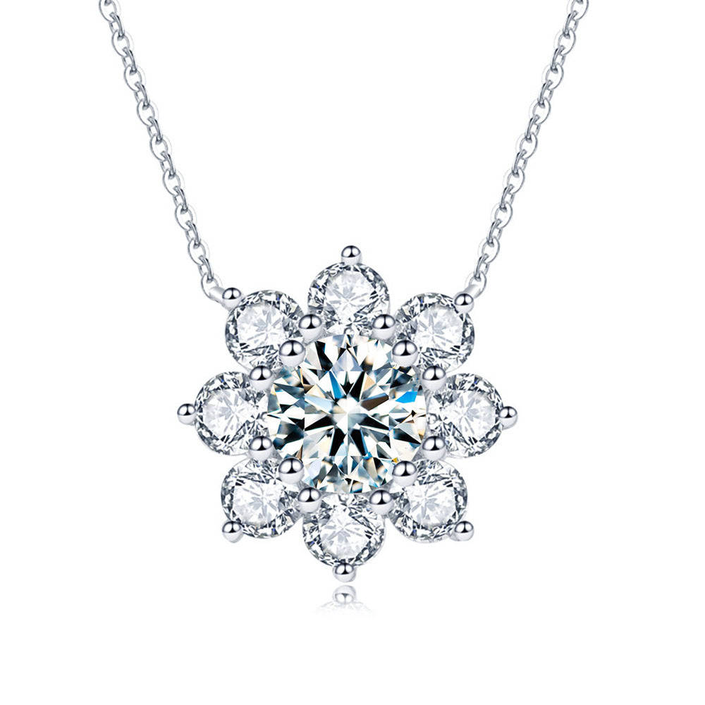 1 carat moissanite necklace women's 925 sterling silver sunflower collarbone chain fashionable light luxury live broadcast hot-selling one piece hair