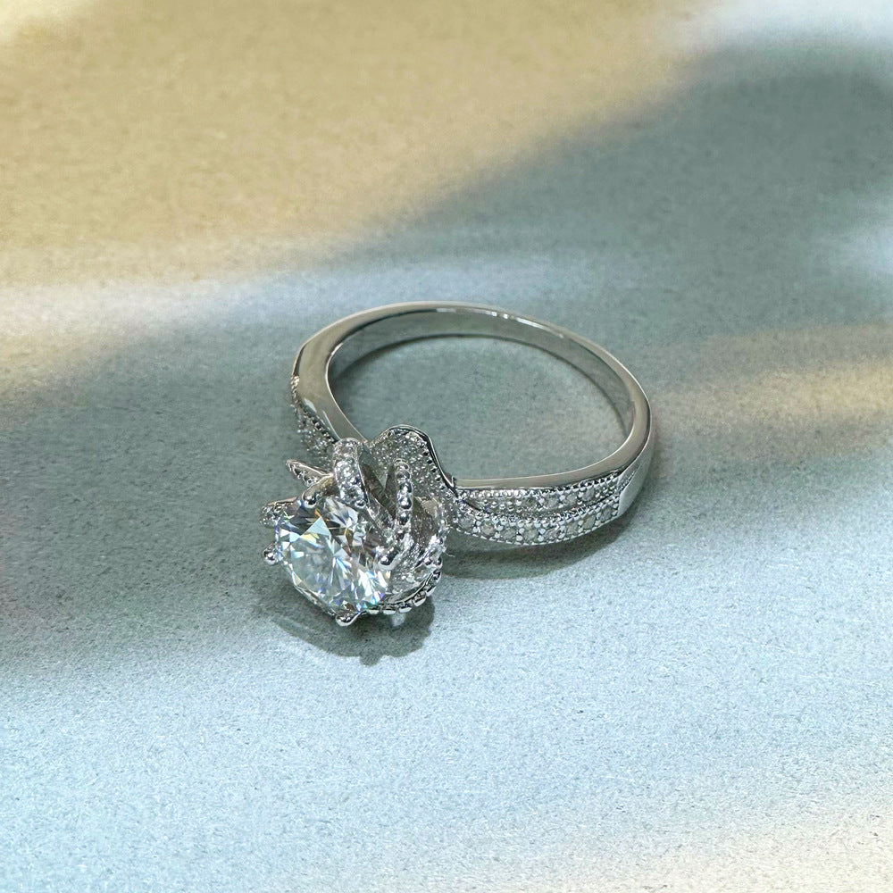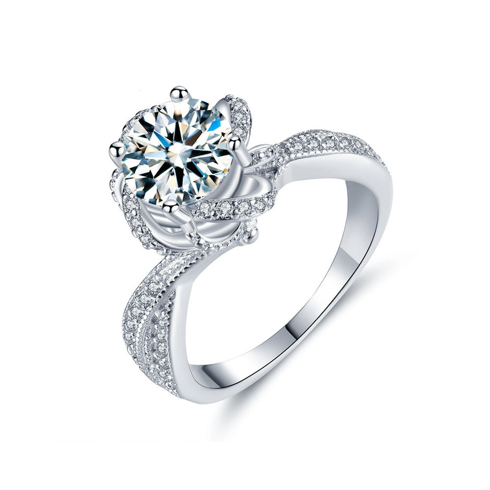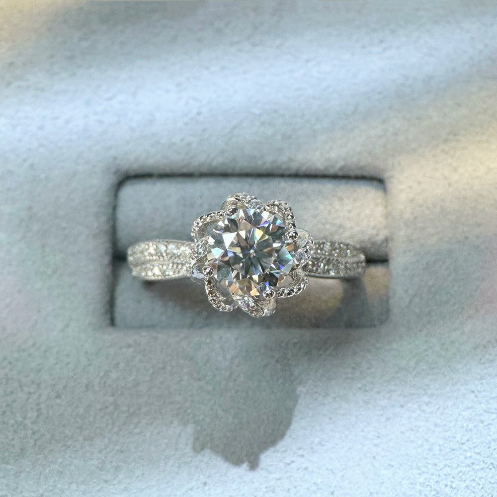 1 carat moissanite ring women's 925 sterling silver rotating rose shape ring live broadcast hot sale wholesale jewelry