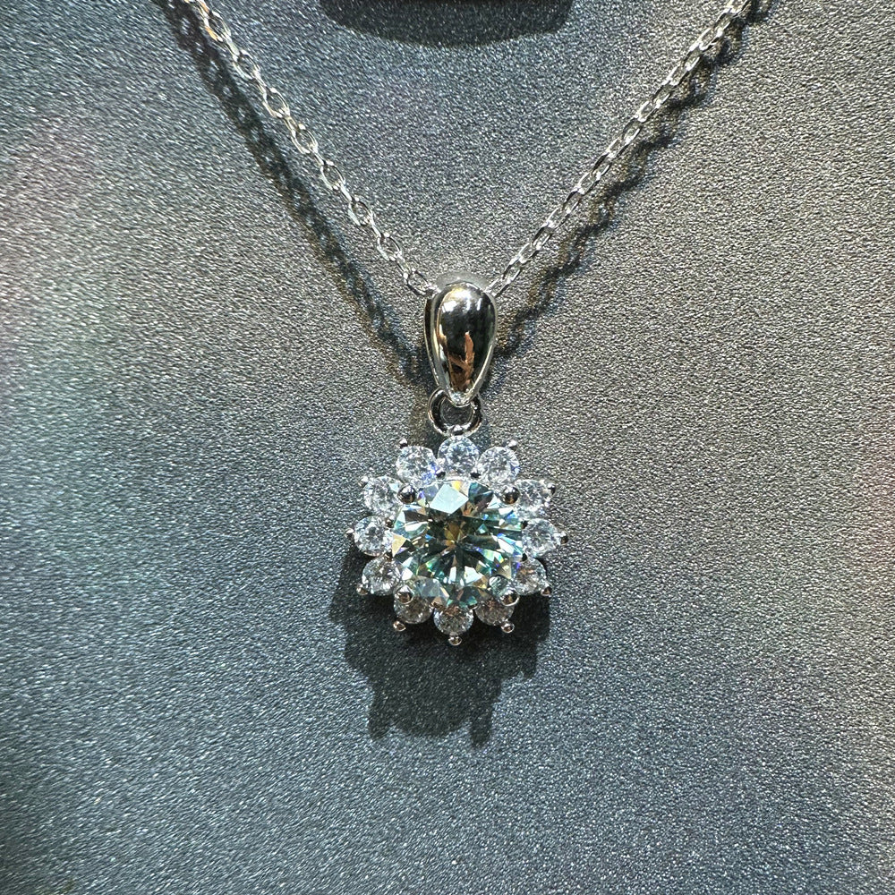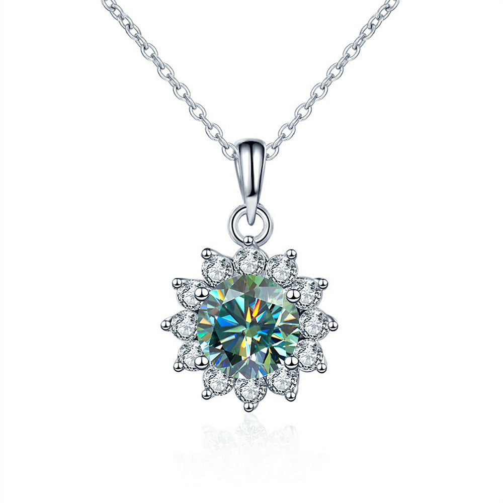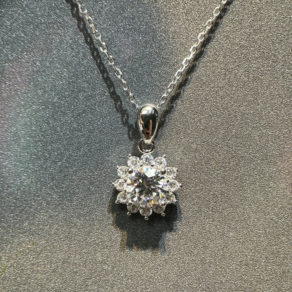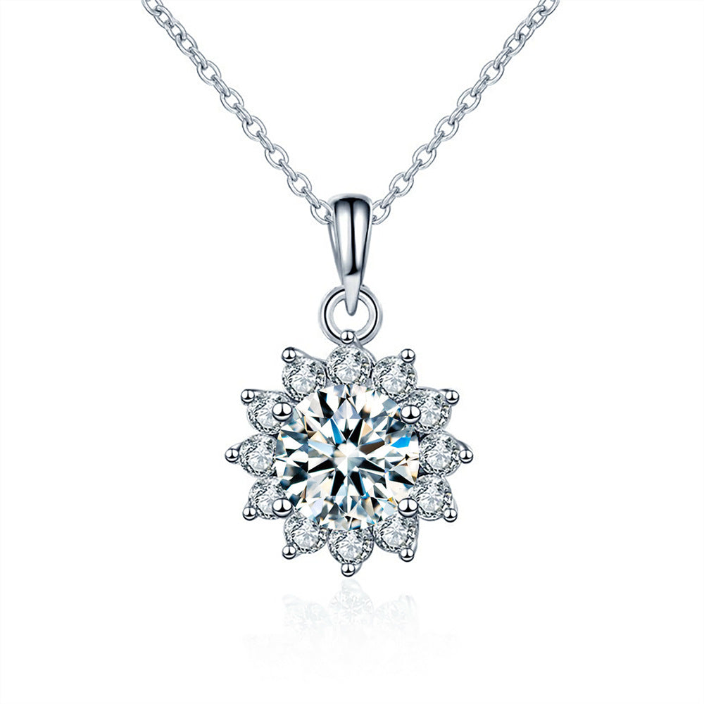 1 carat small sunflower necklace women's S925 silver mozzarella diamond collarbone chain pendant simple and versatile European and American ins wholesale