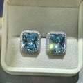 10 carat 10 * 12 high carbon diamond sea blue zirconium stud earrings women's S925 sterling silver Redeen ear jewelry European and American ins jewelry
