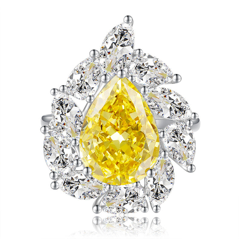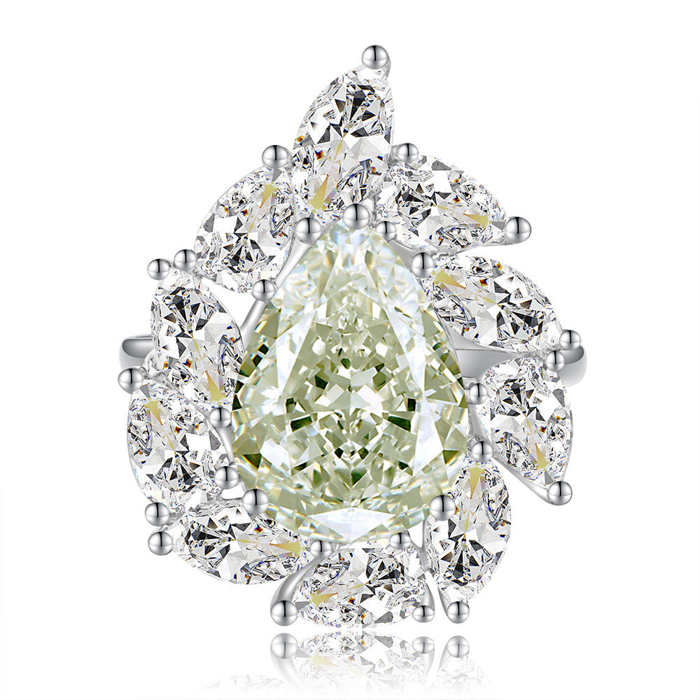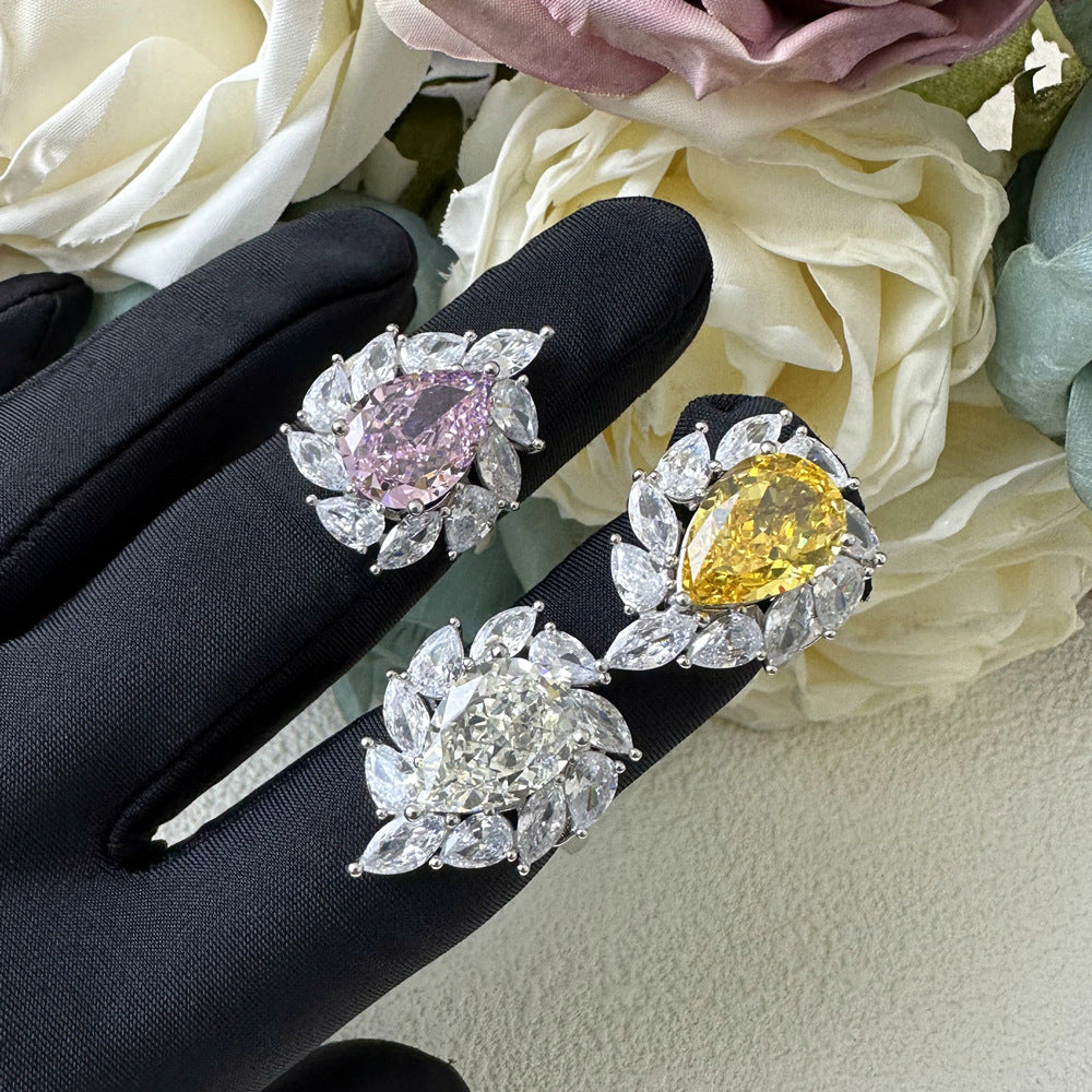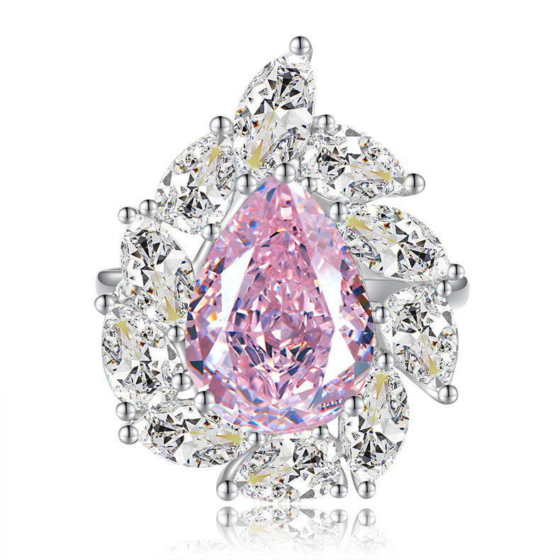 12.8 carat pink diamond ice flower cut ring women's 925 sterling silver 10 * 14 water drop shape imported high carbon diamond European and American jewelry