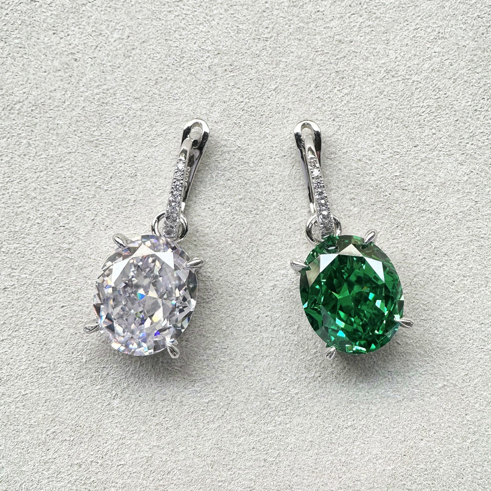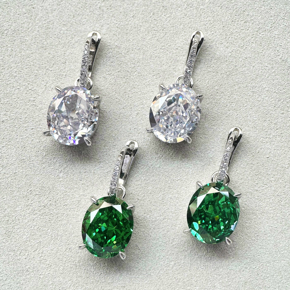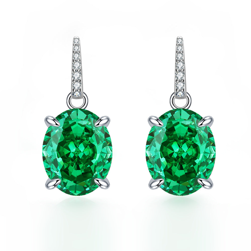 12 carat Dan shape 10 * 12 emerald high carbon diamond ice flower cut earrings women's 925 sterling silver European and American cross-border ear jewelry