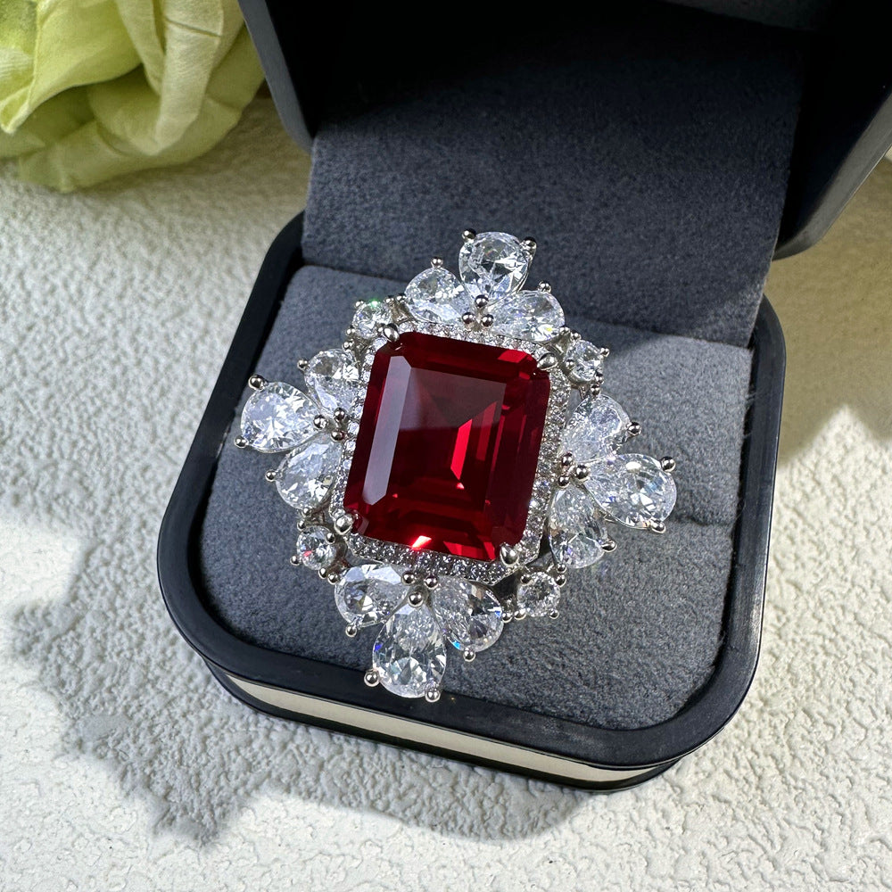 13 carat 12 * 14 pigeon blood ruby ring women's 925 silver rich woman banquet jewelry European and American cross-border luxury inlay jewelry