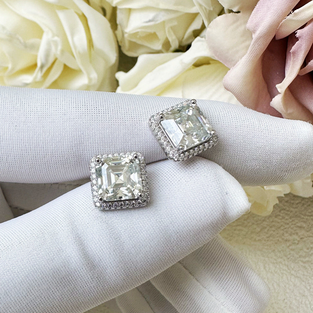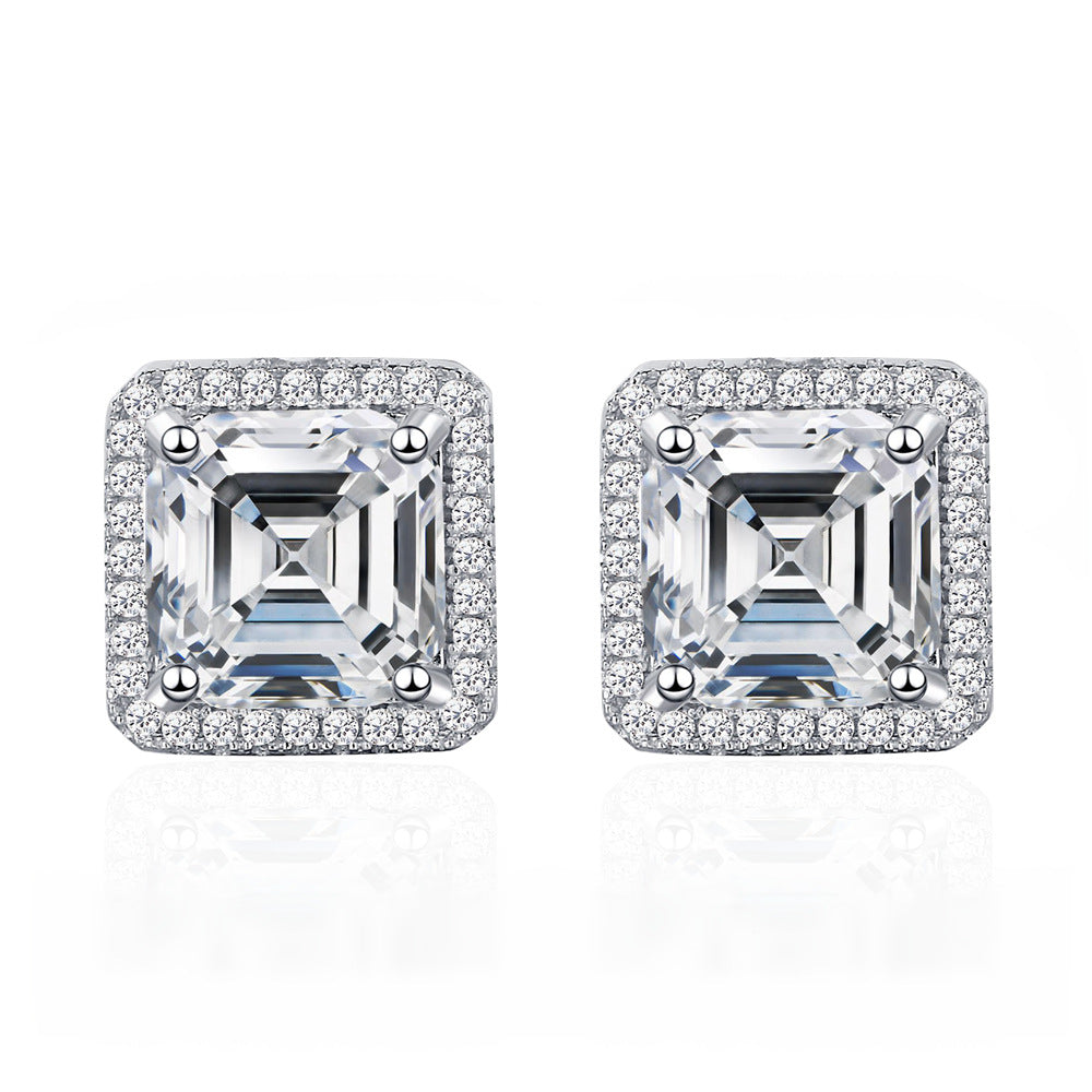 2.5 carat 8 * 8 square ascut square mozzarella diamond stud earrings for women's S925 sterling silver ear jewelry cross-border wholesale