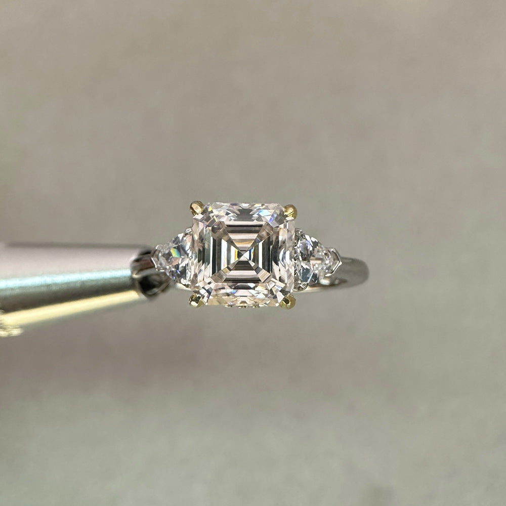 2.5 Carat Square Asci Pagoda Moissanite Ring Women's S925 Sterling Silver 8 * 8 Cube Sugar Diamond Ring Douyin Live