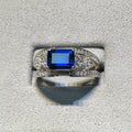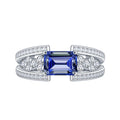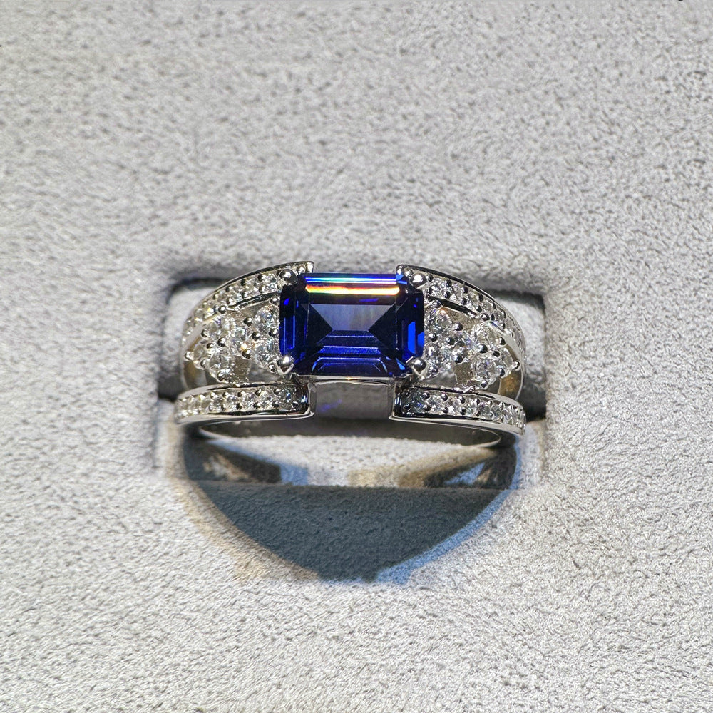 2.5CT rectangular simulation sapphire ring women's 925 silver high-end jewelry Douyin live broadcast wholesale hair