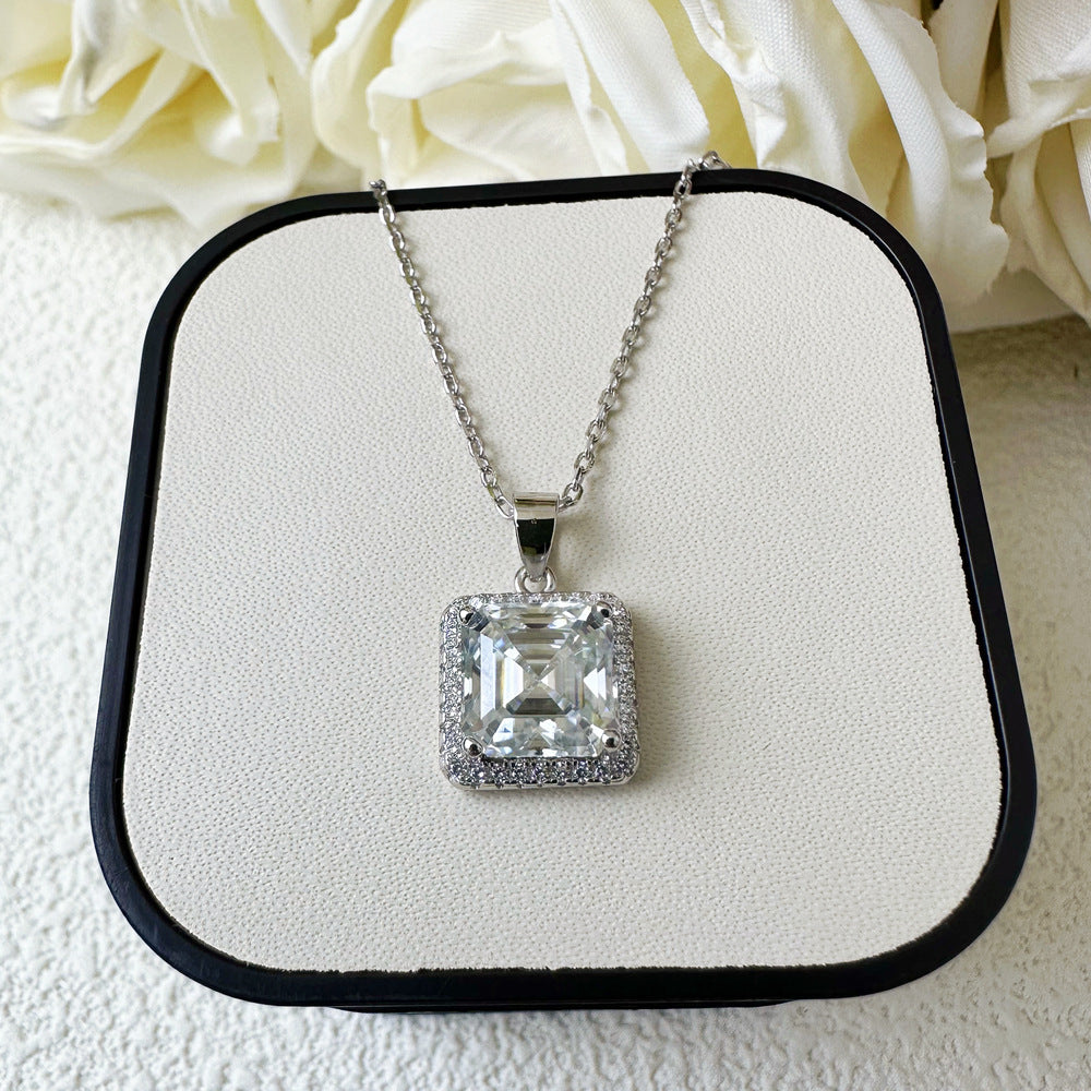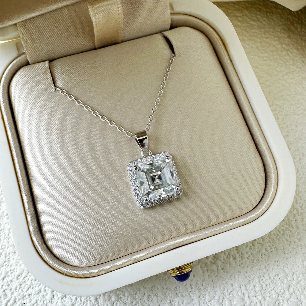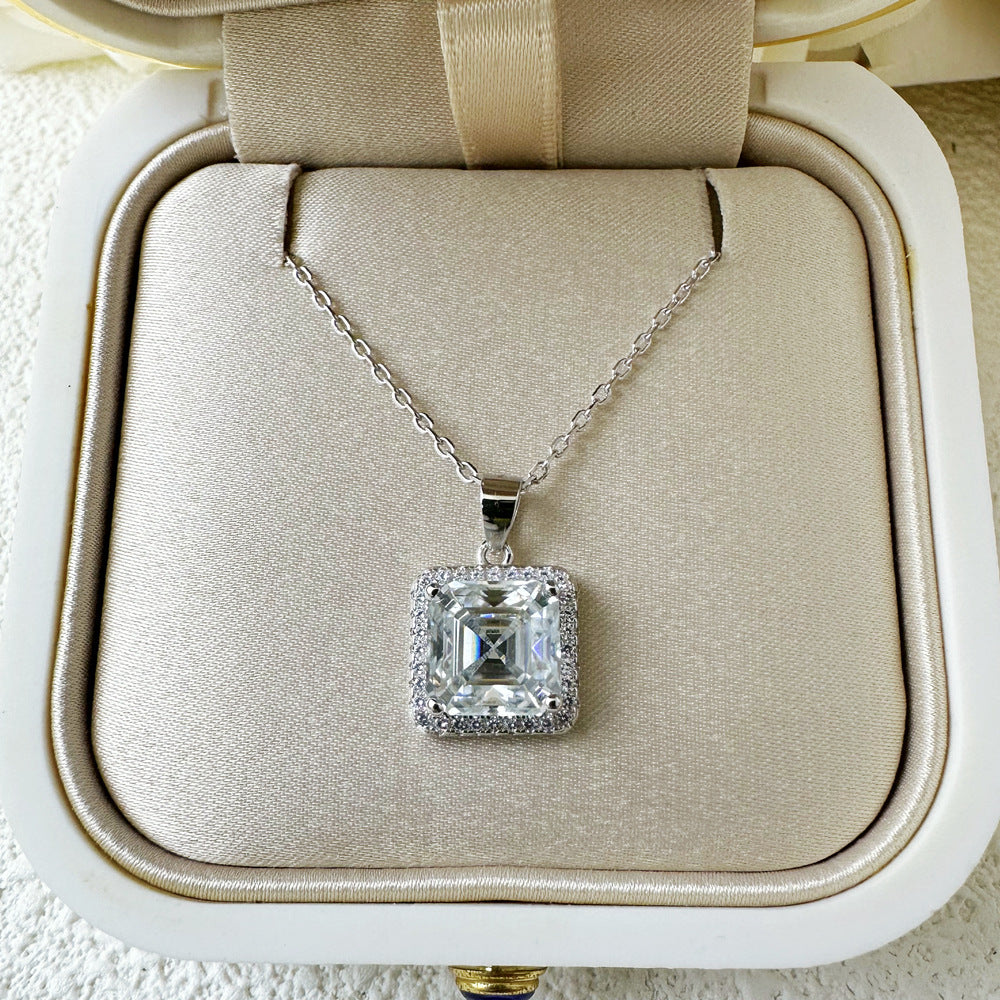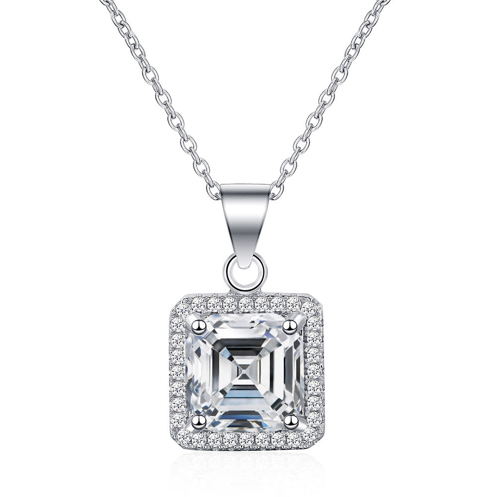 2.5ct square 8 * 8mm mozzarella diamond necklace women's S925 sterling silver pendant collarbone chain European and American cross-border wholesale jewelry