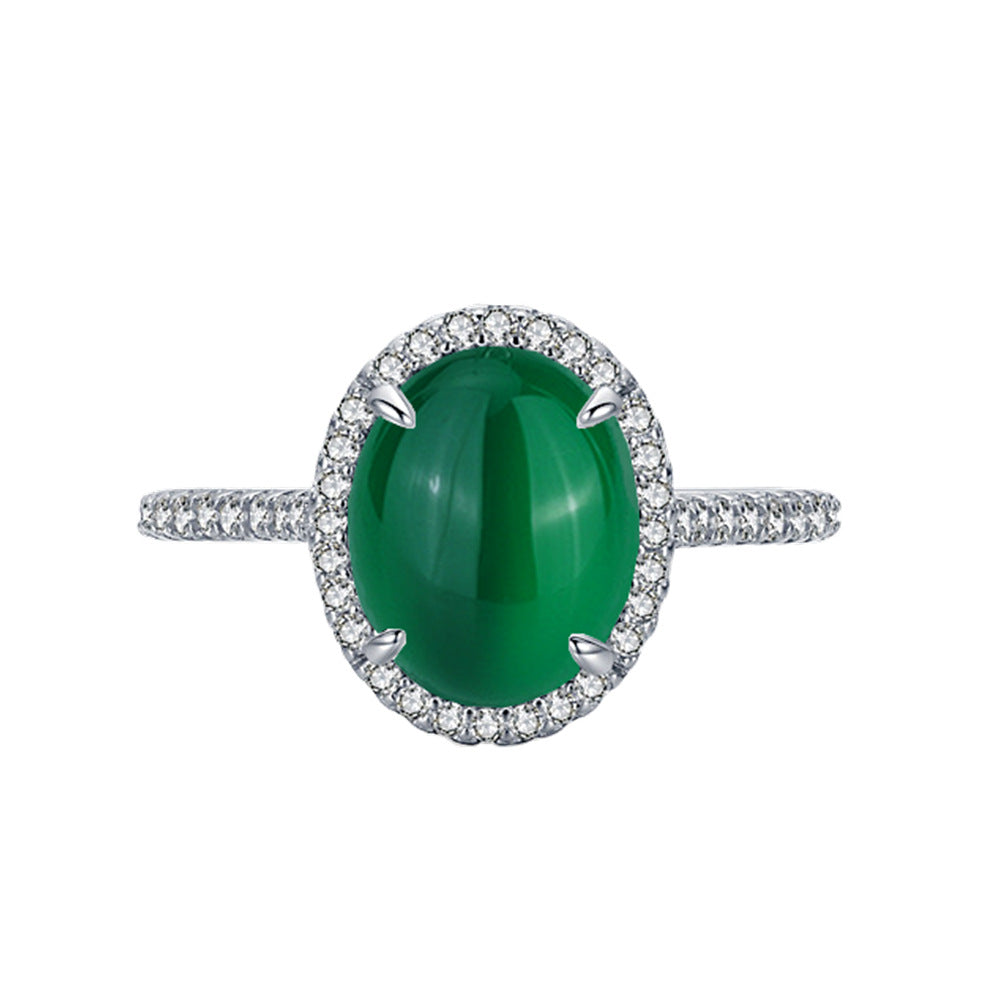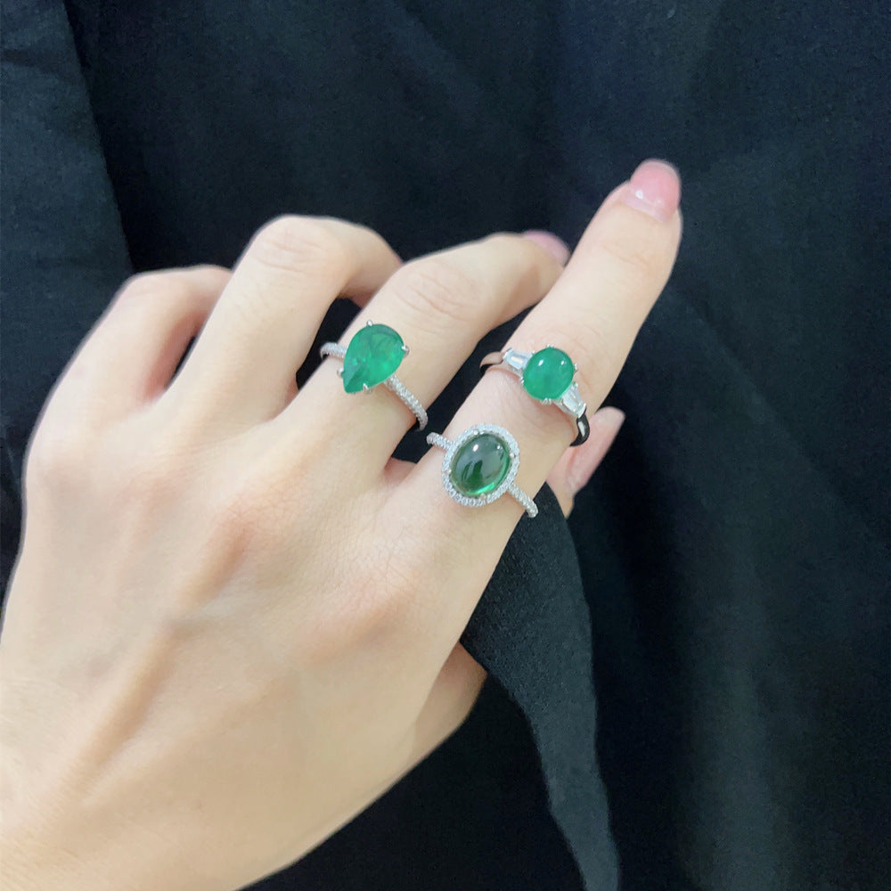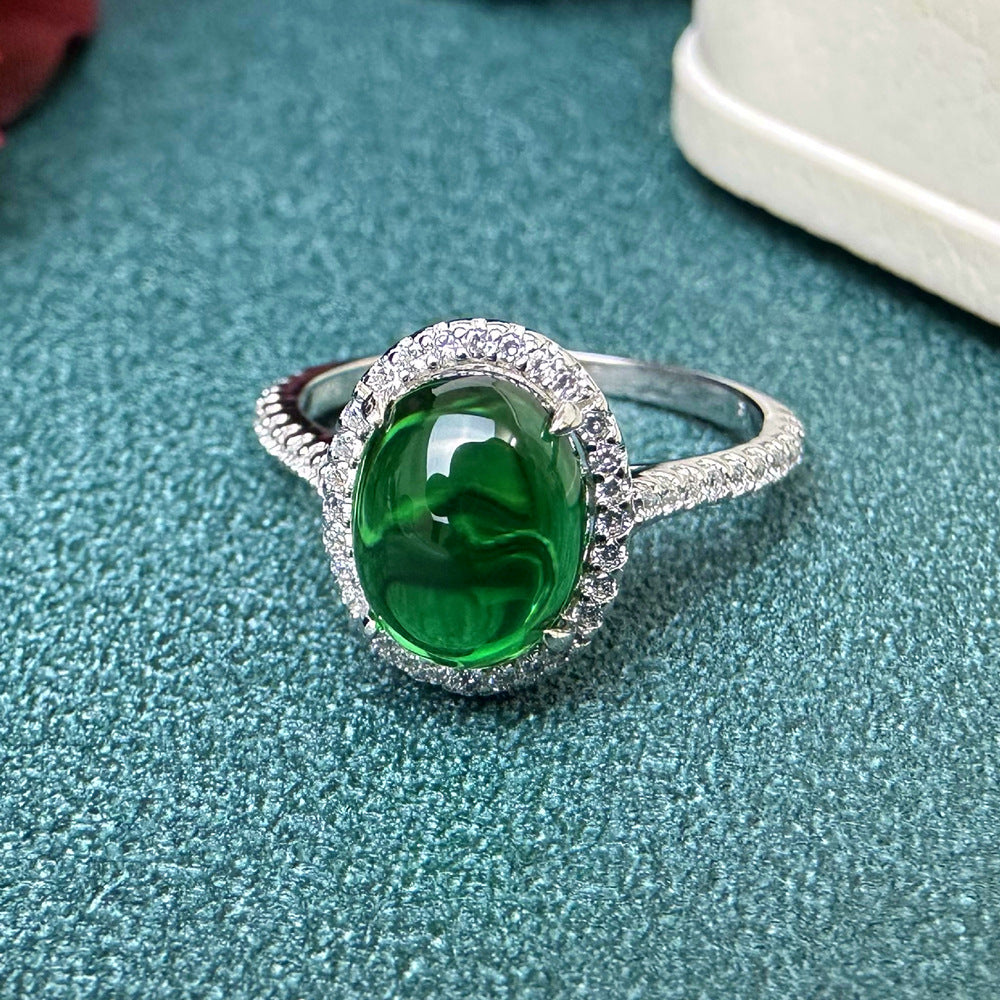 2.6 carat 8 * 10mm egg-shaped plain emerald 925 silver ring woman artificial emerald ring European and American jewelry