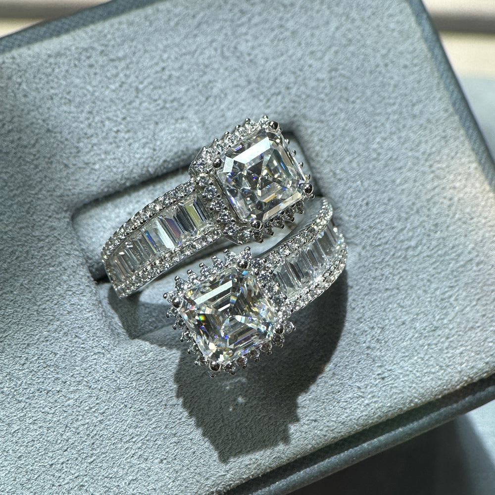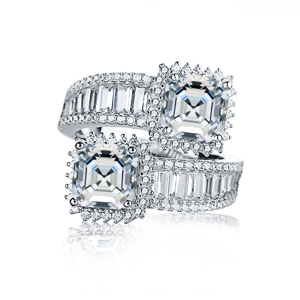 2 carat 7 * 7 square pagoda mozzarella diamond ring women's arms open ring European and American foreign trade cross-border jewelry wholesale