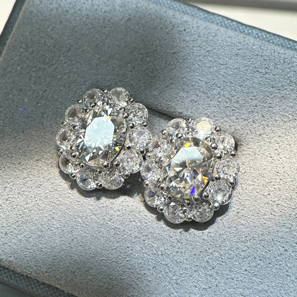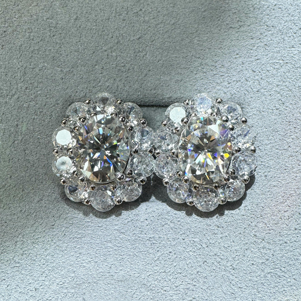 2 carat 7 * 9 pigeon egg moissanite stud earrings S925 sterling silver European and American ladies elegant high-end ear jewelry wholesale