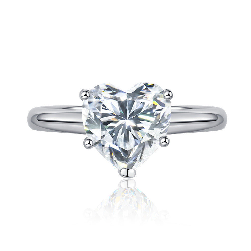 2 carat 8 * 8mm heart-shaped moissanite diamond ring classic versatile wedding ring S925 sterling silver ring European and American cross-border ring