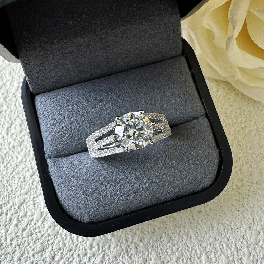 2 carat 8mm round eight hearts and eight arrows mozzarella diamond ring S925 silver wedding proposal diamond ring European and American cross-border jewelry