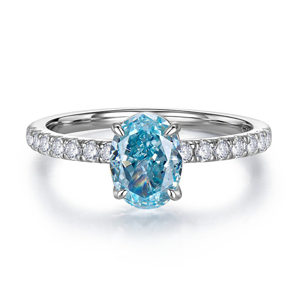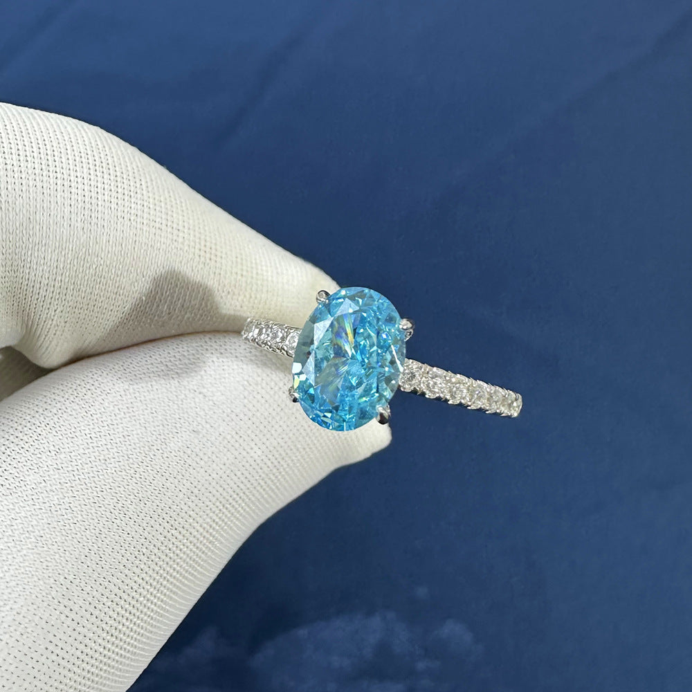 2023 new 2.8ct Aquamarine high carbon diamond S925 sterling silver ring women's 6 * 8 denier ice flower cut ring wholesale