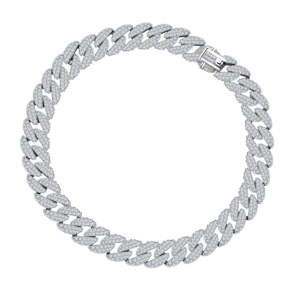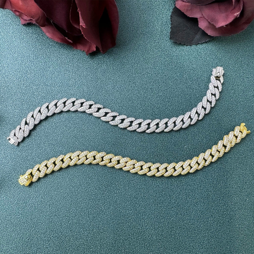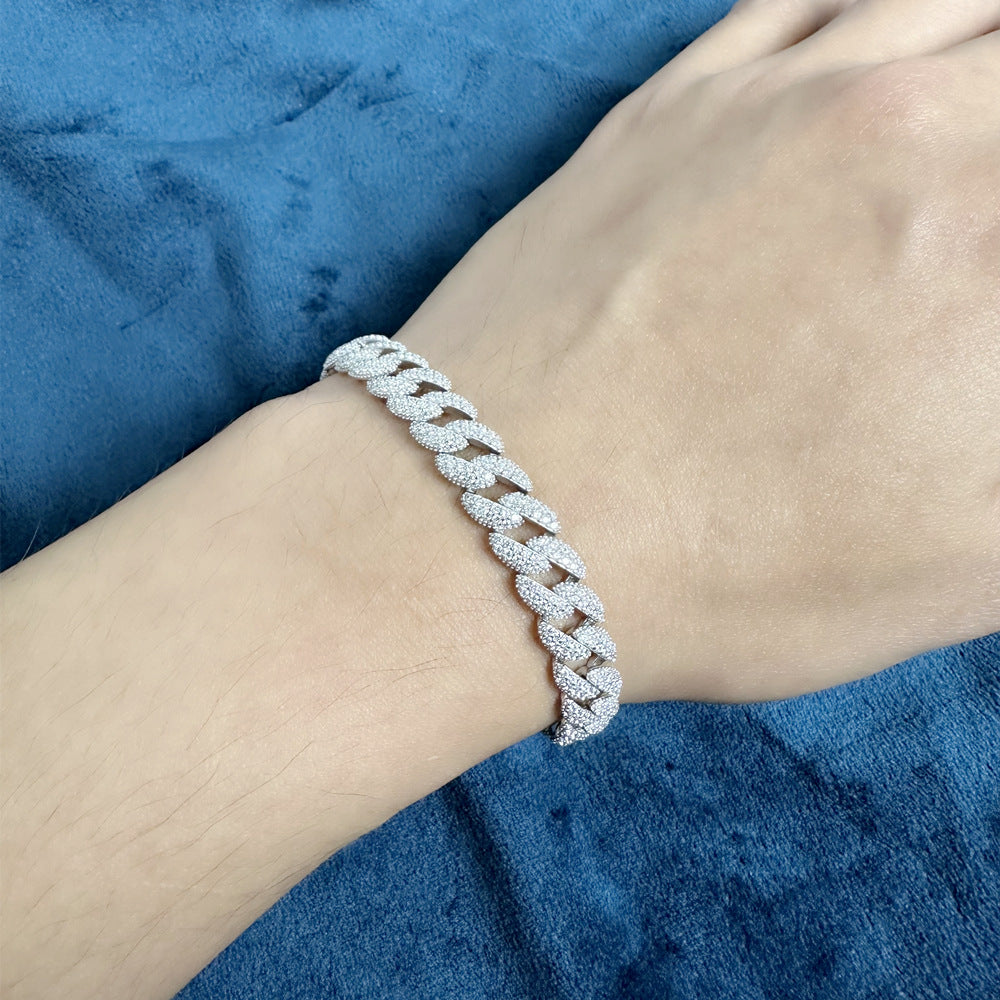2023 new micro-inlaid diamond Cuban chain S925 sterling silver bracelet, men's and women's same European and American hip-hop silver jewelry wholesale
