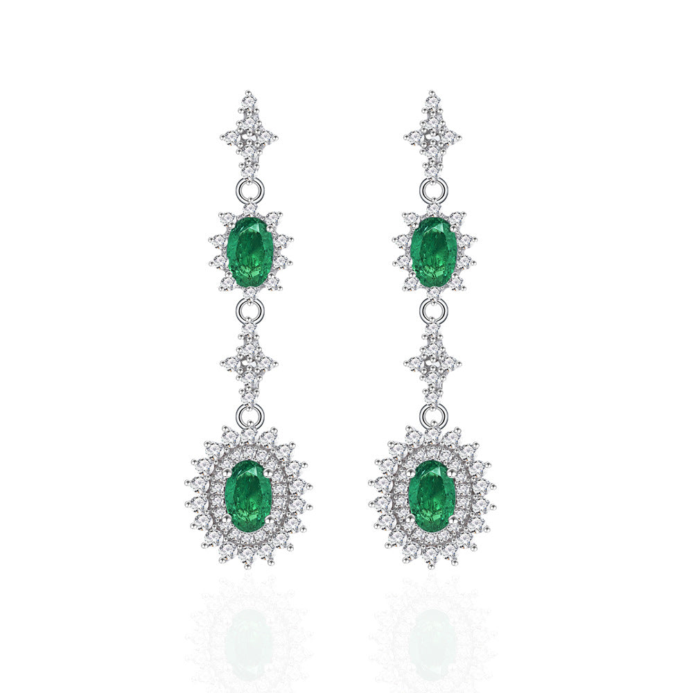 2023 New Vintage Emerald Earrings Women's S925 Sterling Silver European and American Luxury Stud Earrings Bridal Set Jewelry