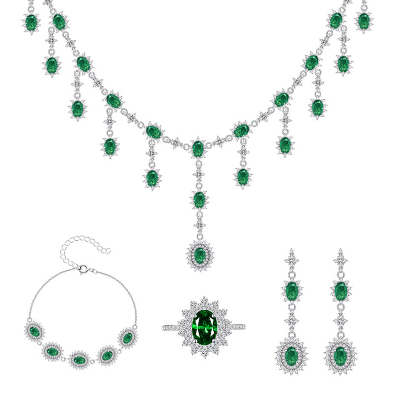 2023 New Vintage Emerald Necklace Women's S925 Sterling Silver European and American Premium Banquet Bridal Set Banquet Jewelry