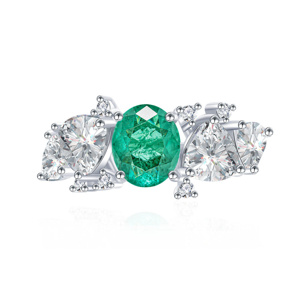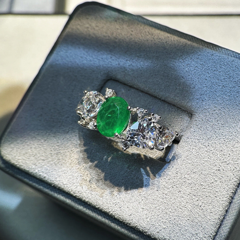 2024 New 1.5ct Simulation Emerald Ring 925 Sterling Silver Gem Ring Women's European and American High-end Luxury Jewelry