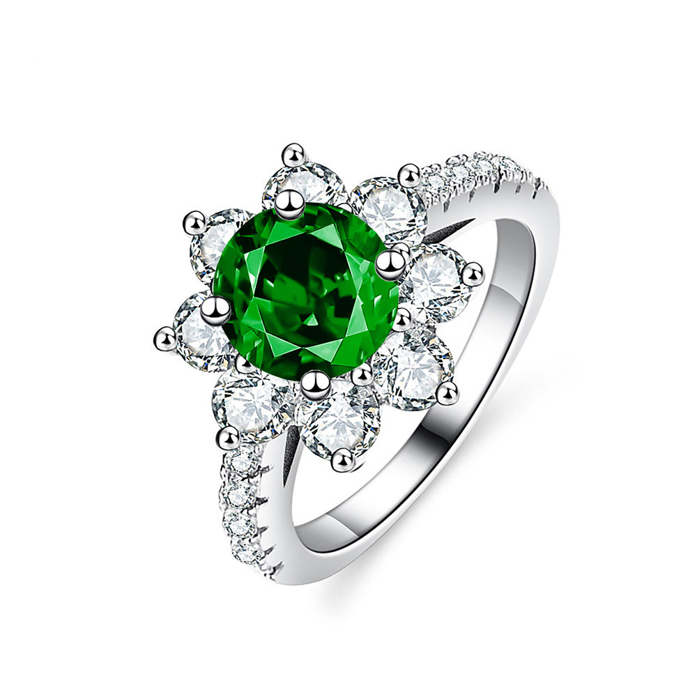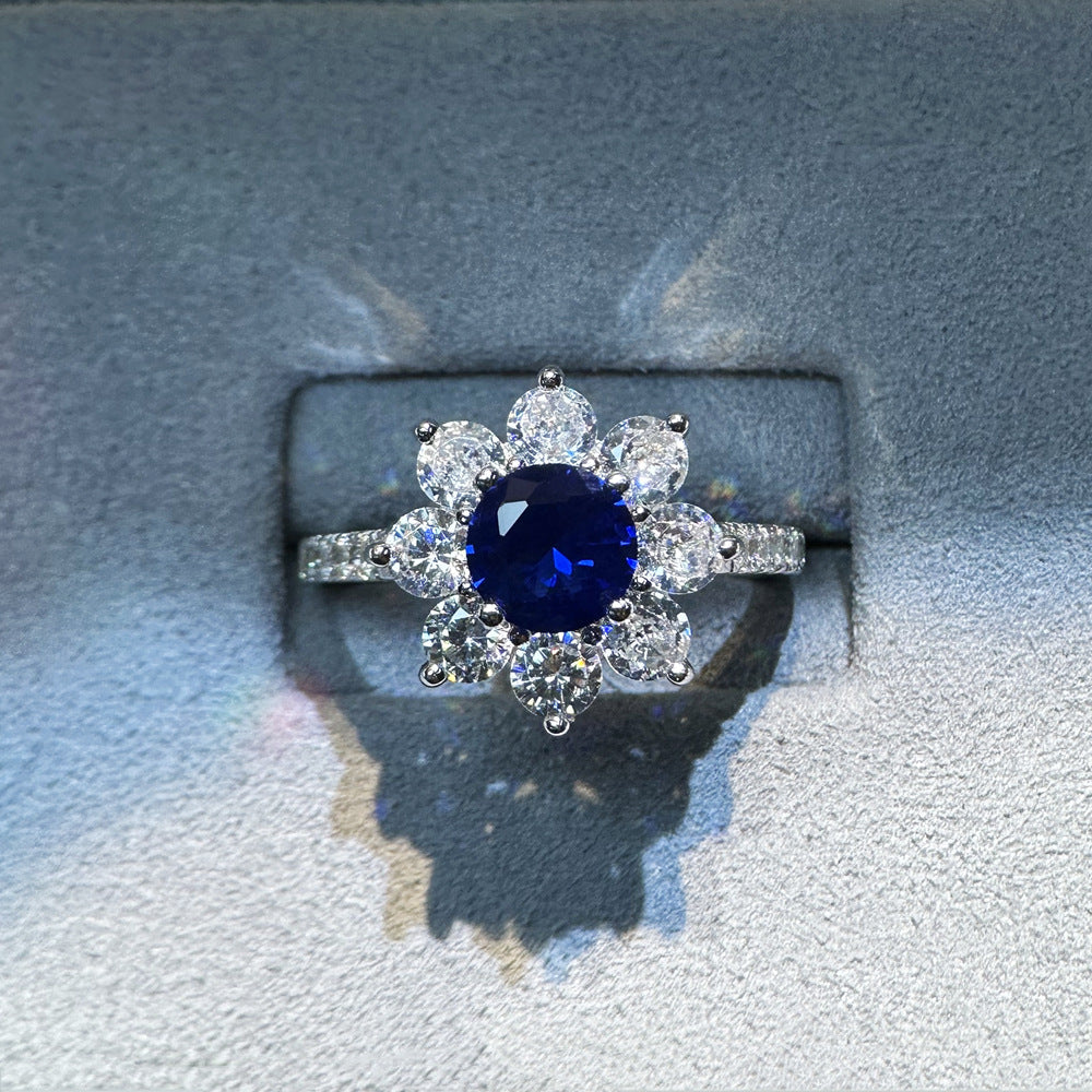 2024 new blue-green ruby ring women's S925 sterling silver snowflake ring wish live stream hot jewelry wholesale