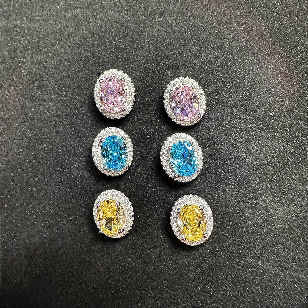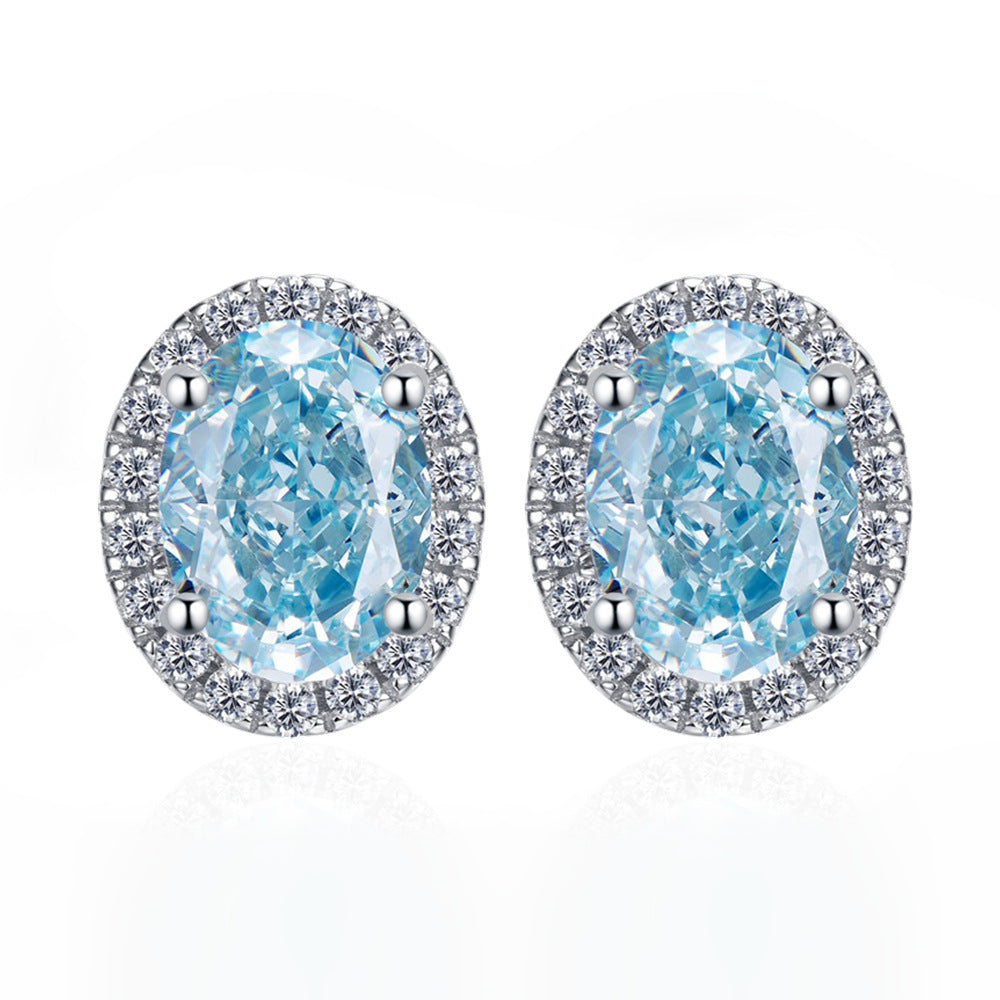 2024 new Dan shape 6*8 ice flower cut aquamarine stud earrings female 925 sterling silver high carbon diamond ear jewelry cross-border delivery