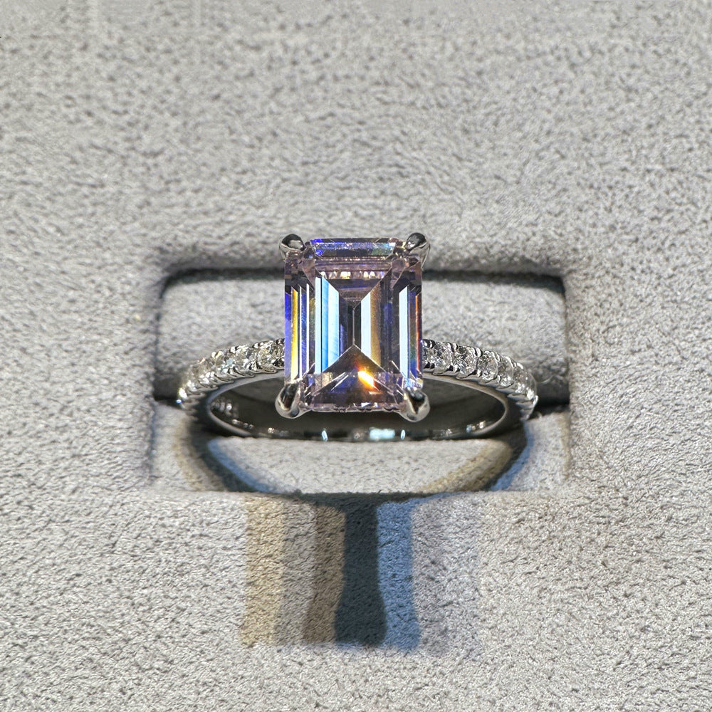 2025 new S925 silver high carbon diamond ring 7 * 9 cherry blossom powder 4 carats luxury European and American style live broadcast explosion wholesale