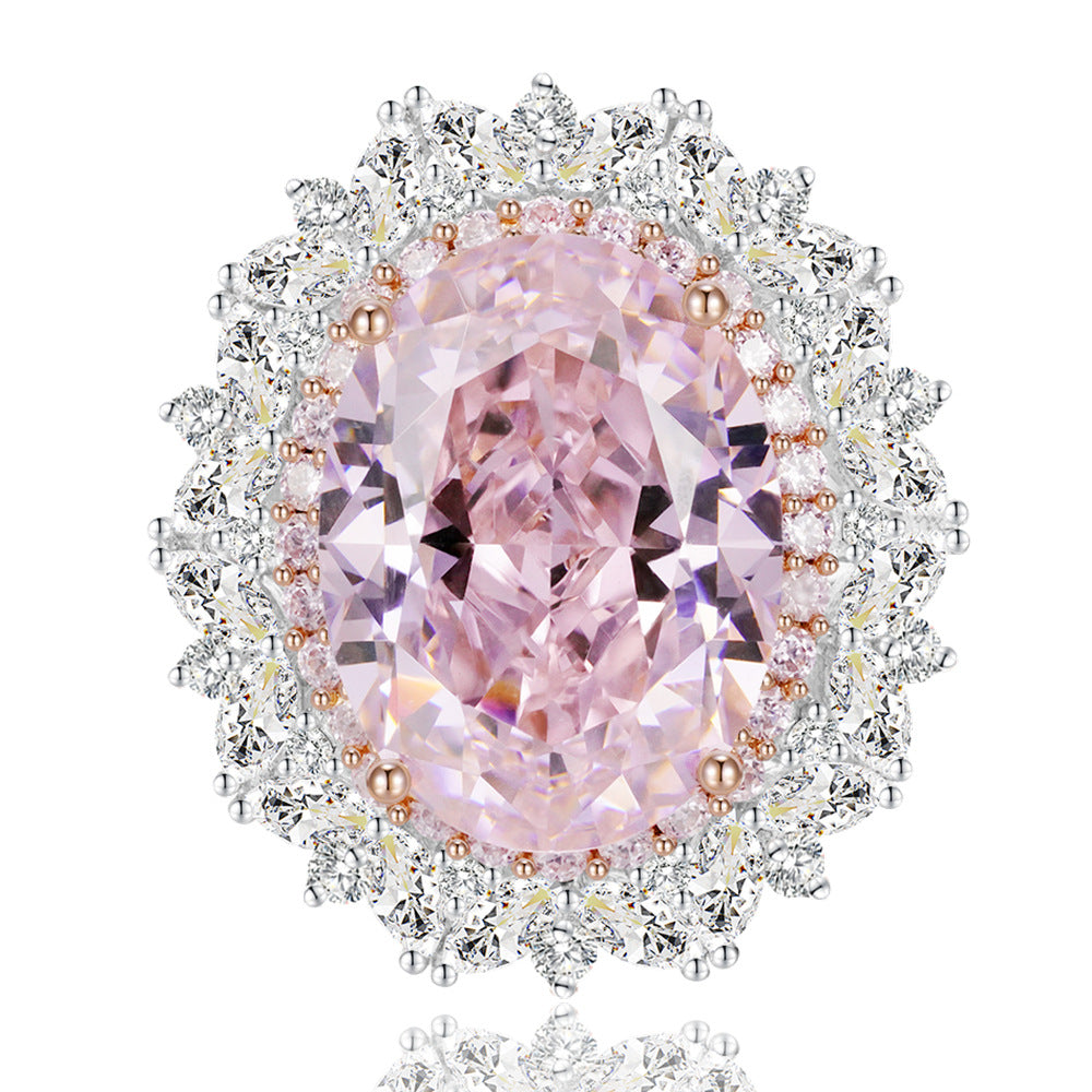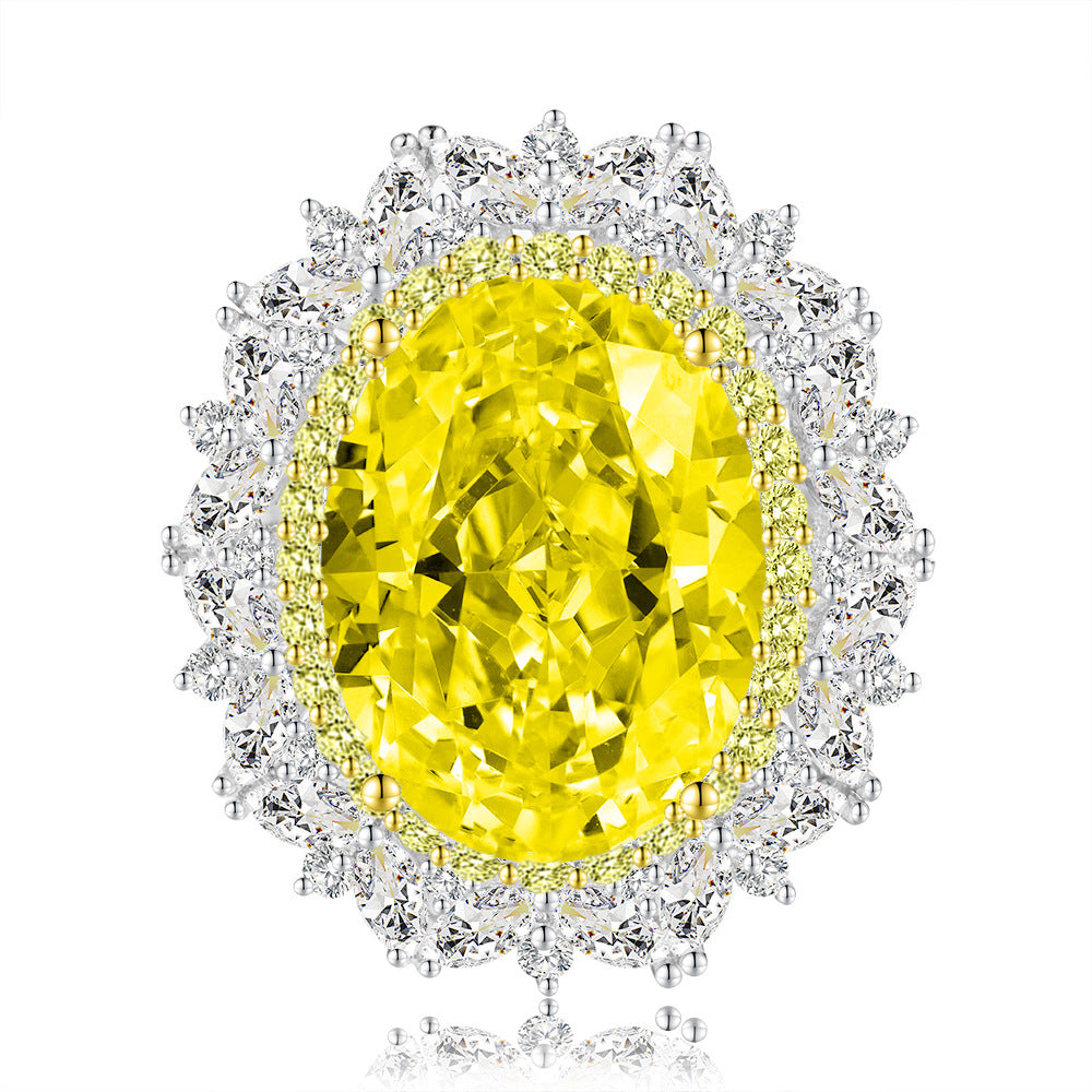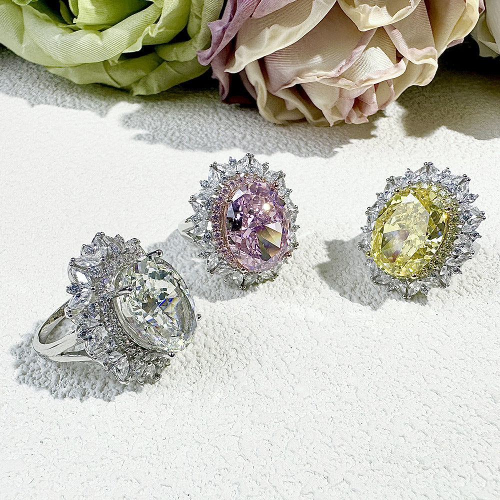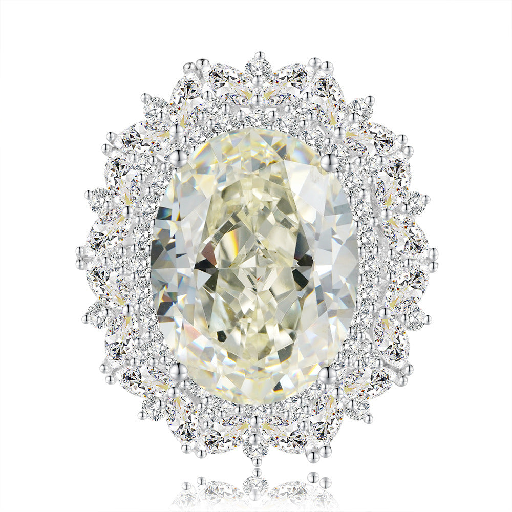 23 carat ice flower cut 12 * 16mm white G color high carbon diamond S925 sterling silver ring women's European and American luxury high jewelry
