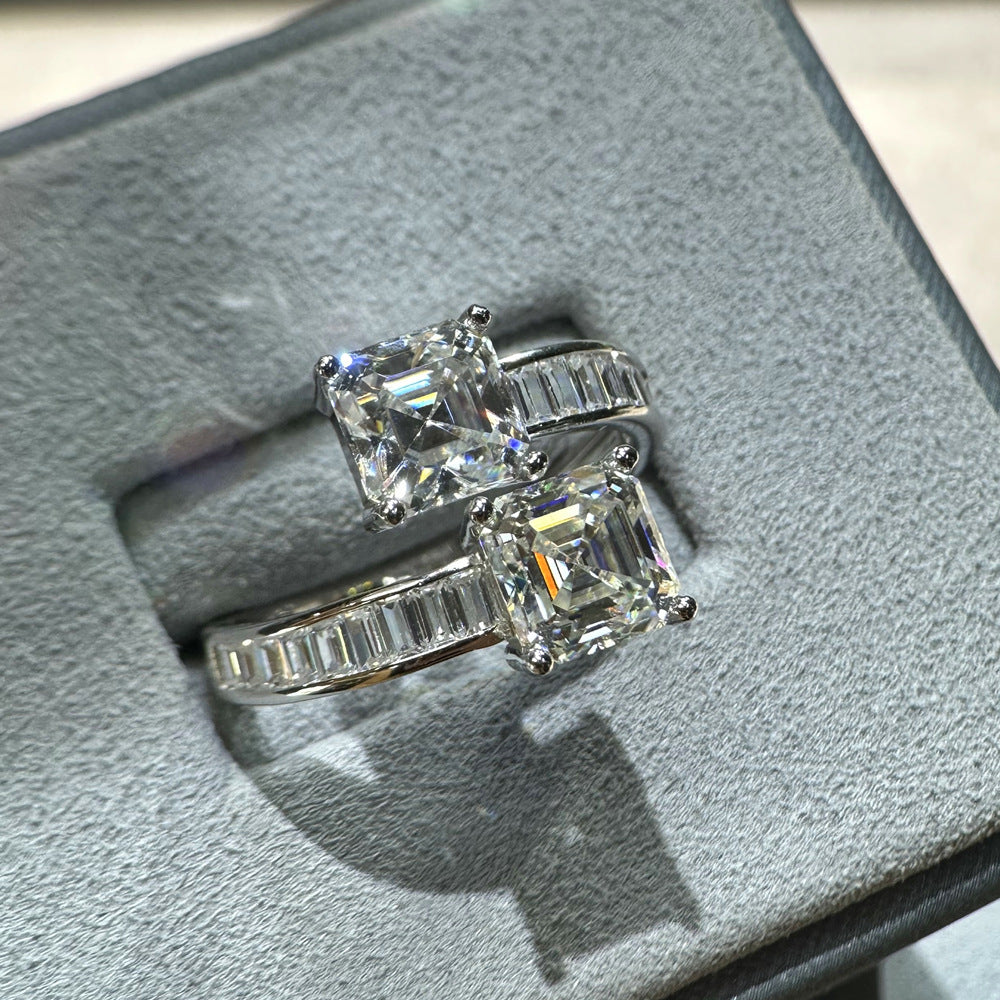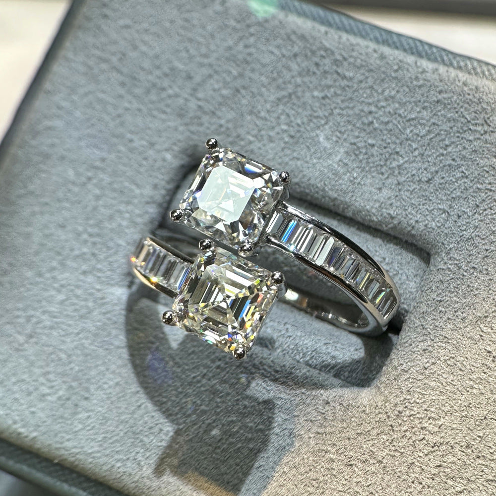 2ct pagoda 7 * 7 sugar mozzarella diamond ring niche design push square row diamond S925 sterling silver ring European and American jewelry