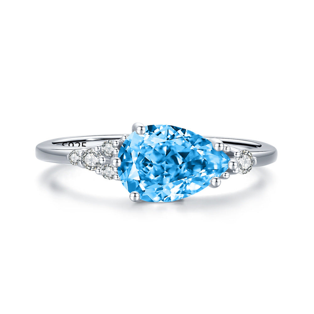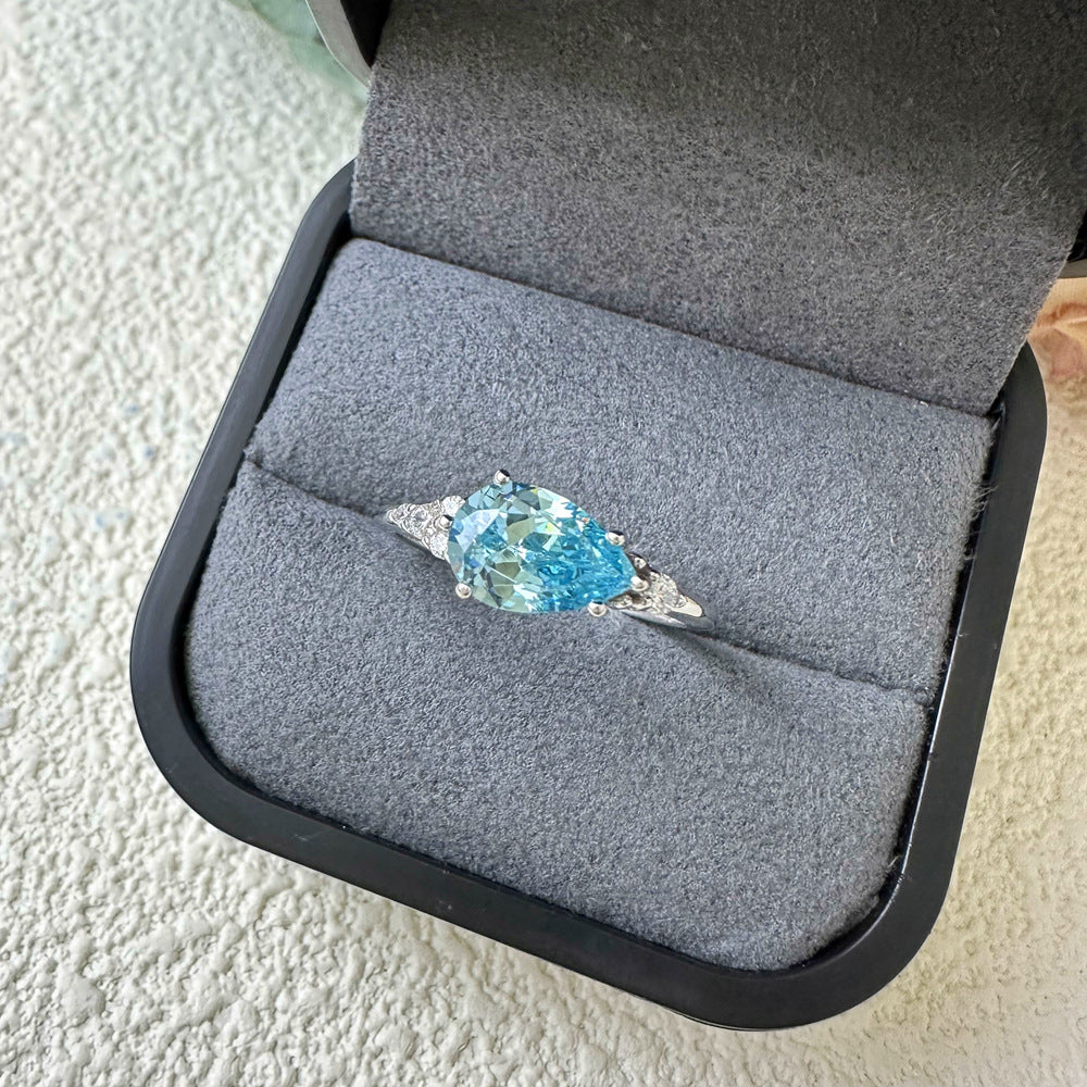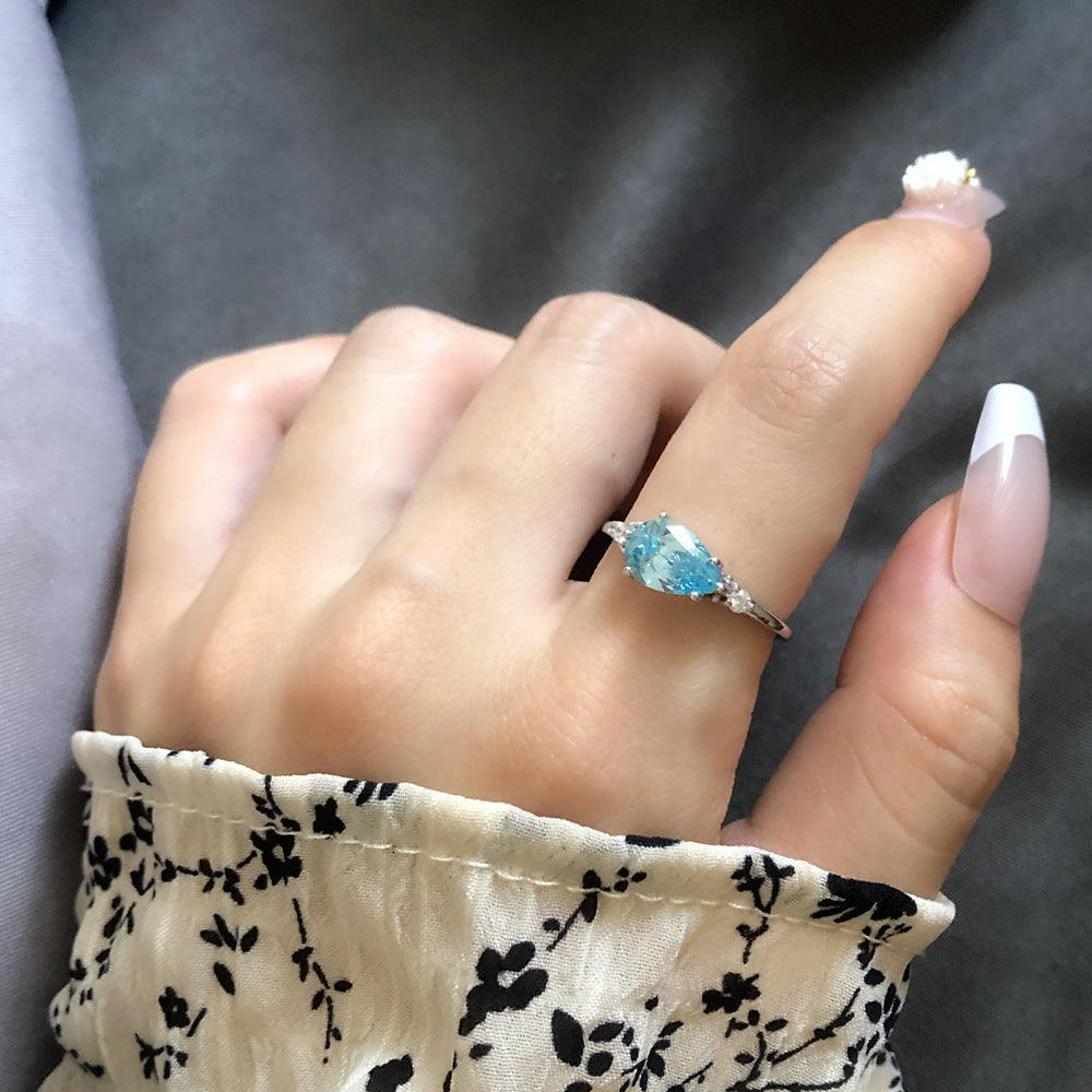 2ct water drop shape 6 * 9 light sea blue treasure topaz S925 sterling silver ring women's European and American simple niche design jewelry