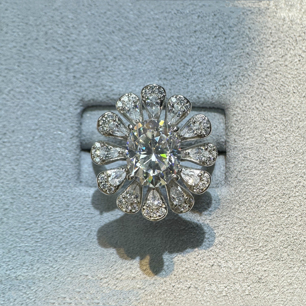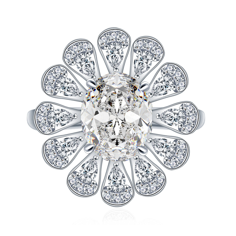 3 carat Dan shape 8 * 10 mozzarella diamond sterling silver ring women's light luxury ins wind sunflower diamond ring Douyin live broadcast new model