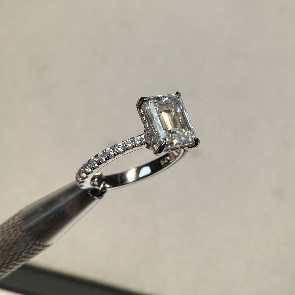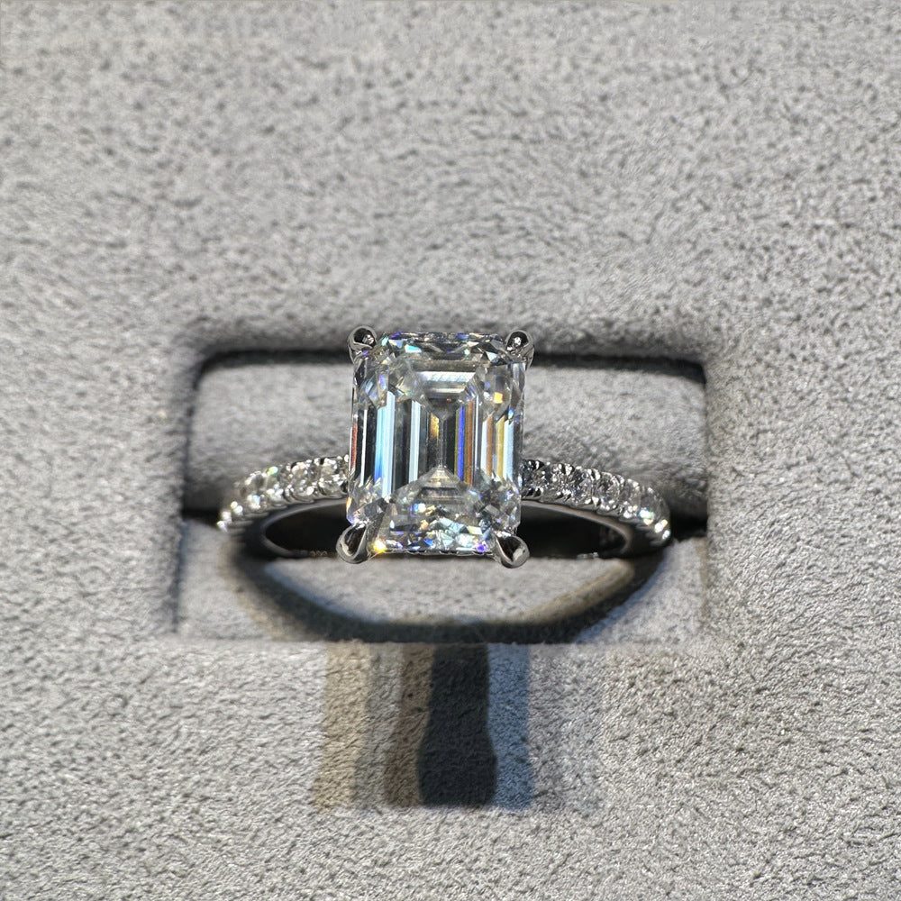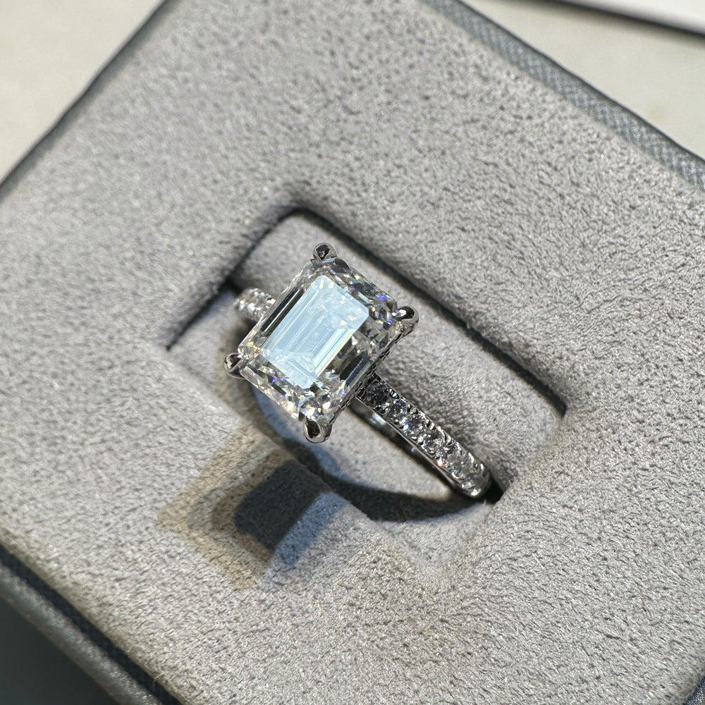 3CT sugar cube mozzarella diamond ring women's European and American light luxury S925 sterling silver 7 * 9 emerald cut rock sugar diamond ring high sense