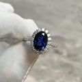 4.4 carat European and American classic artificial sapphire 8 * 12 oval 925 sterling silver ring, cross-border foreign trade live broadcast explosion