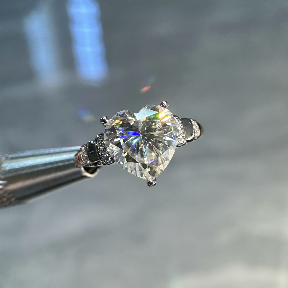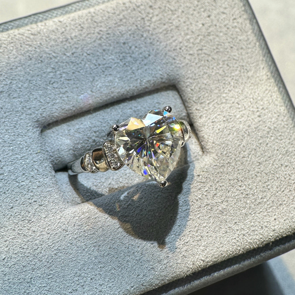 4 carat 10 * 10mm love shape mozzarella diamond sterling silver ring female Douyin live broadcast new ring wholesale high sense