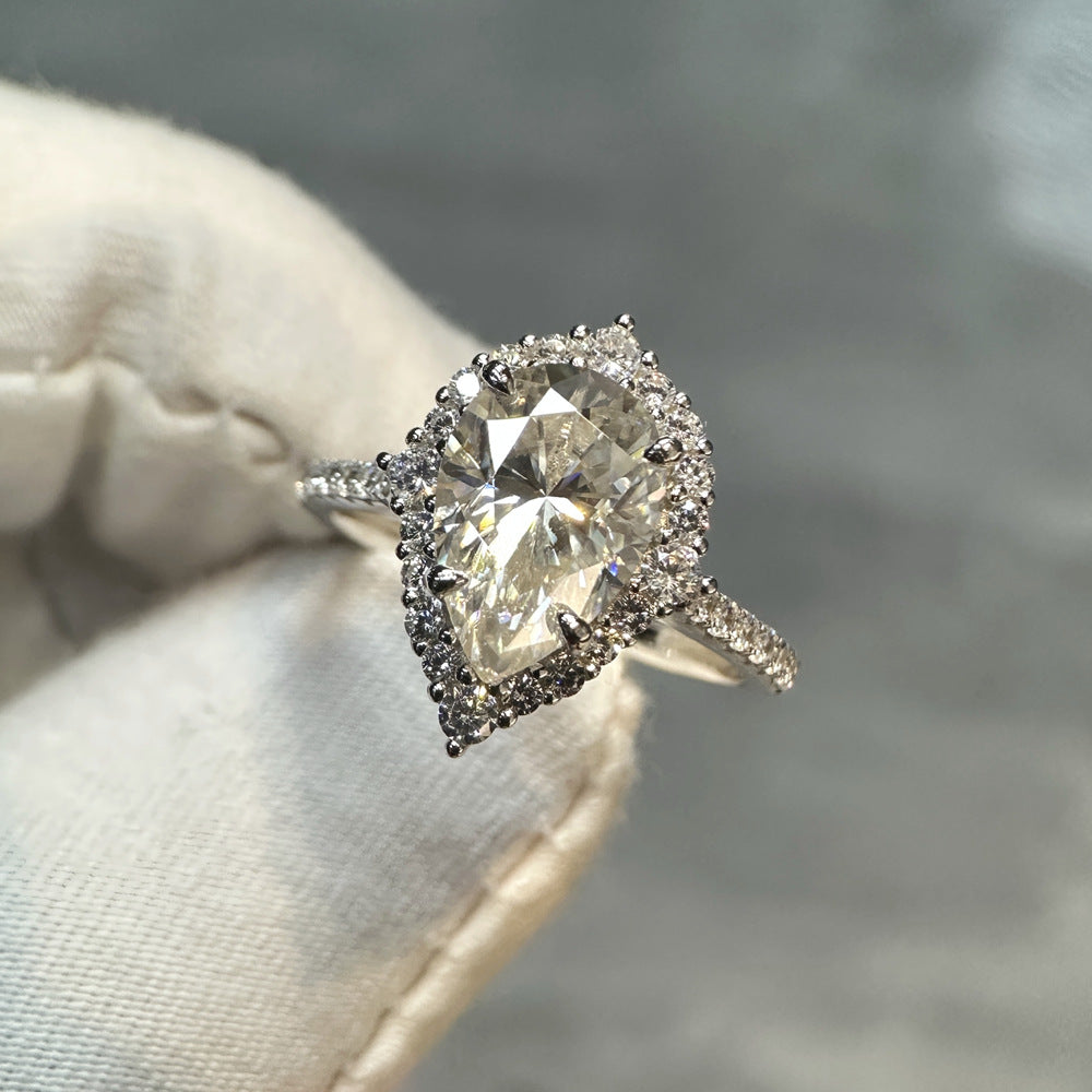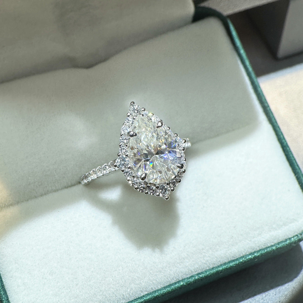 4 carat special-shaped 8 * 12 water drop mozzarella diamond ring women's S925 sterling silver simulation diamond ring European and American ins live stream jewelry