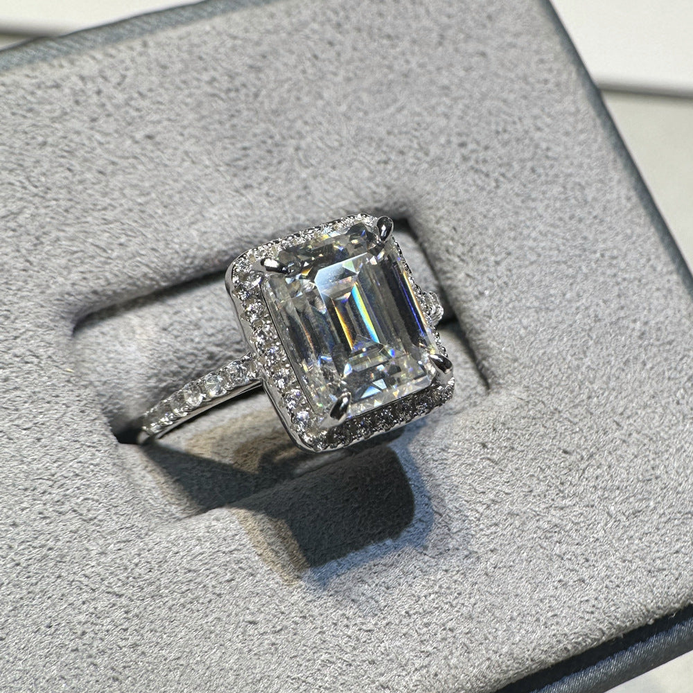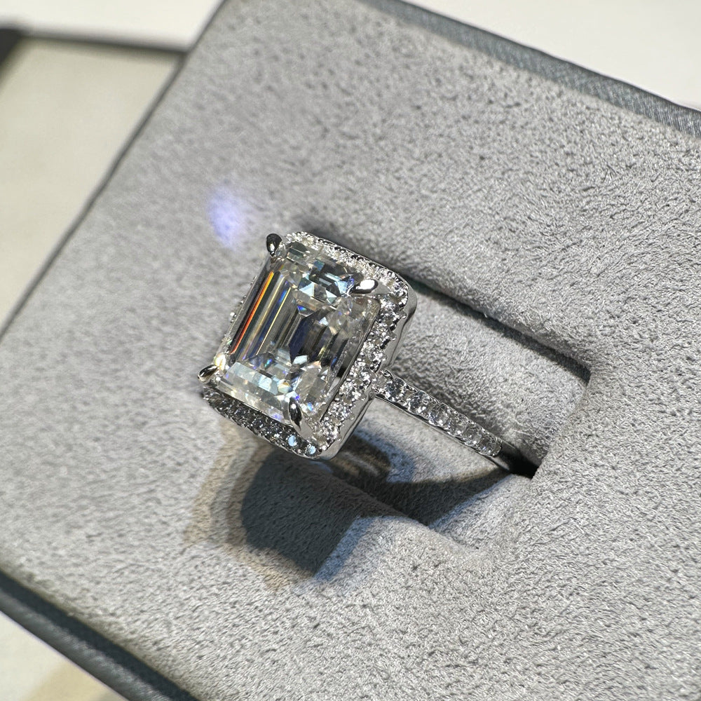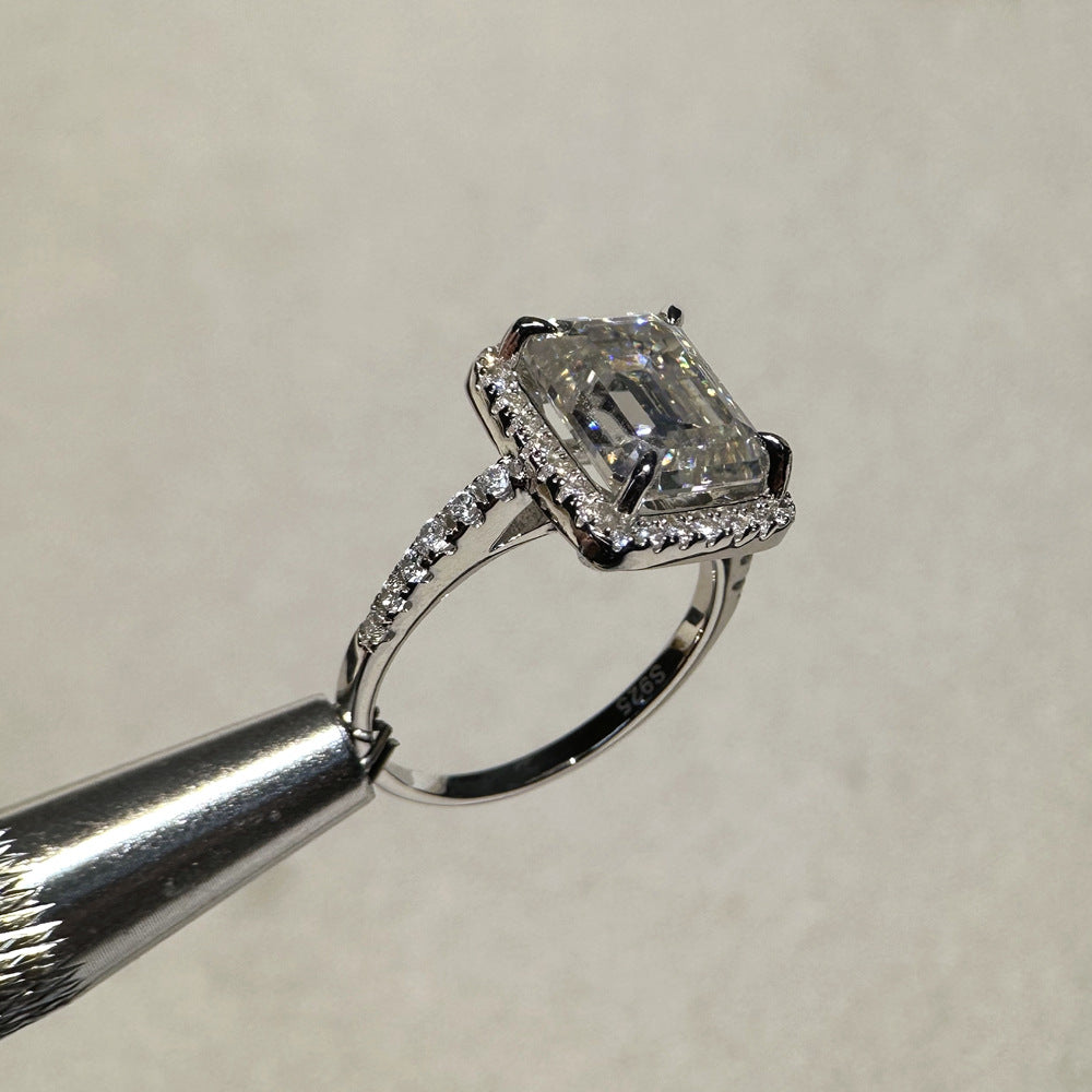4CT moissanite ring women's 925 sterling silver 8 * 10 emerald cut diamond ring European and American retro simple ring new product