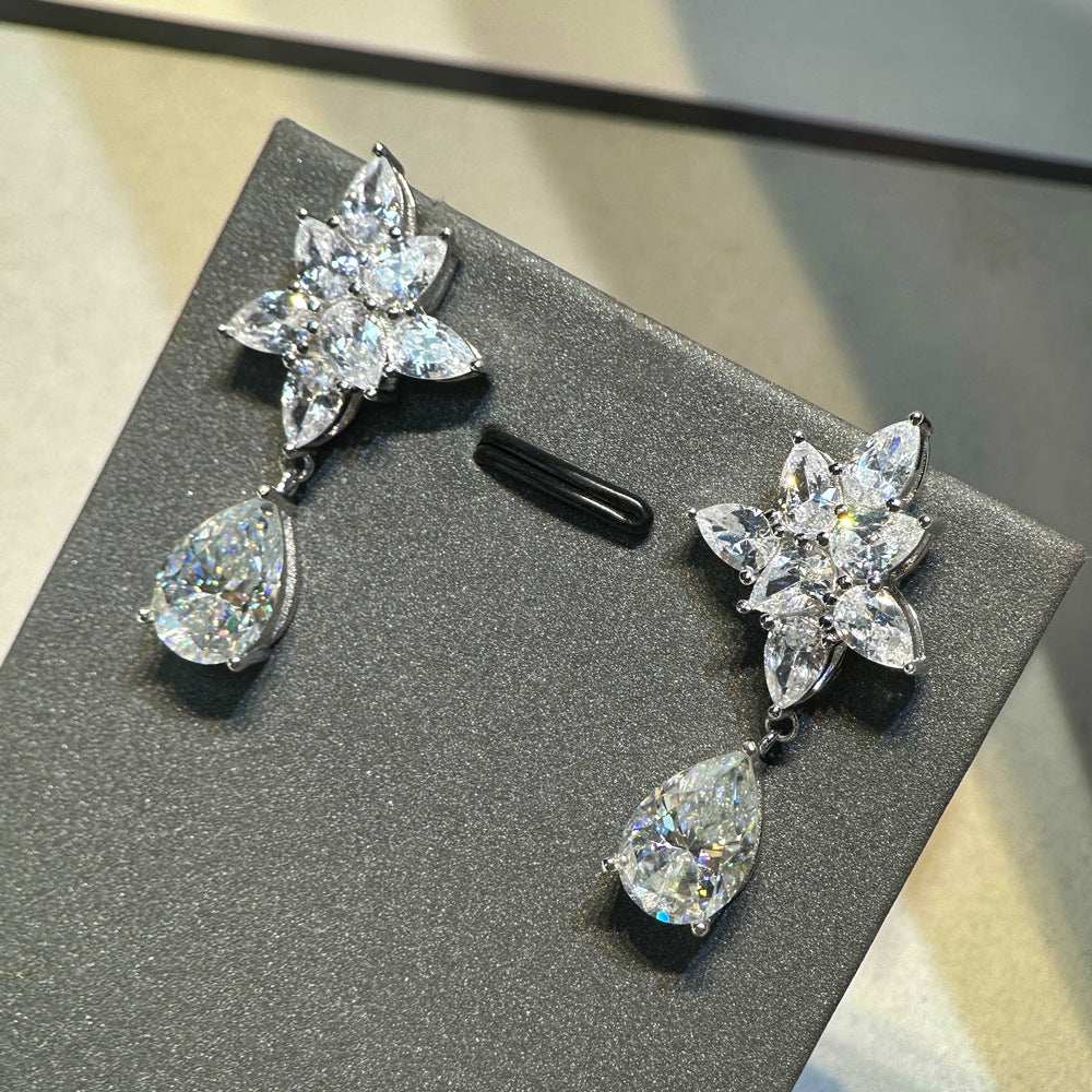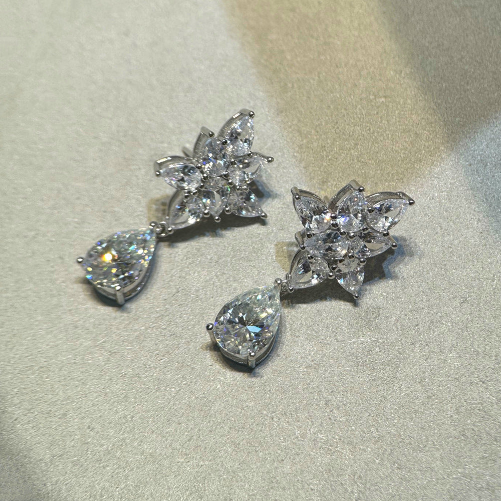 4ct water drop mozzarella diamond earrings women's 925 silver 8 * 12mm pear-shaped earrings European and American fashion dinner party high jewelry