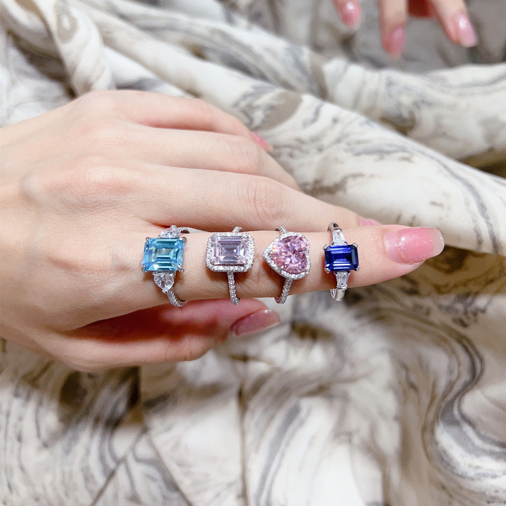 5.5 carat aquamarine ring women's 925 sterling silver 8 * 10mm rectangular high carbon diamond European and American cross-border live broadcast jewelry
