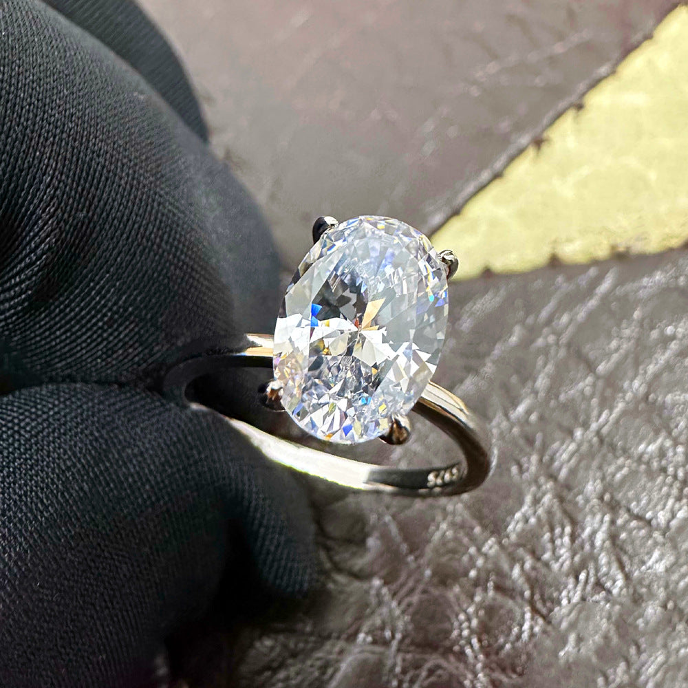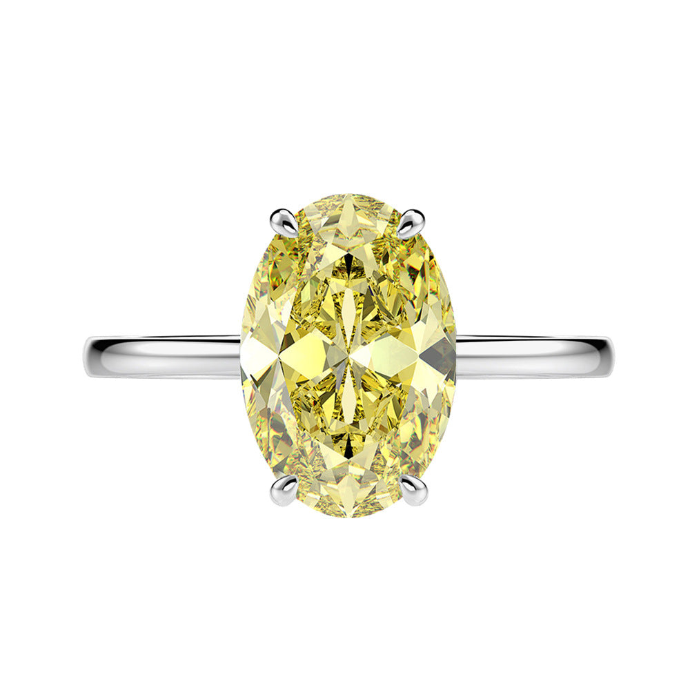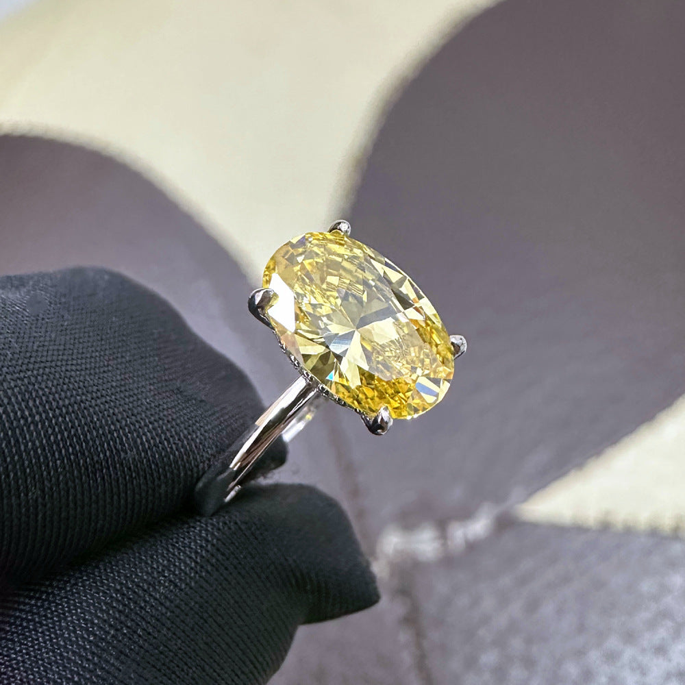 5.5 Claridine Cut High Carbon Diamond 8 * 12mm Oval Yellow Diamond Ring Women's 925 Sterling Silver Diamond Ring Europe and America