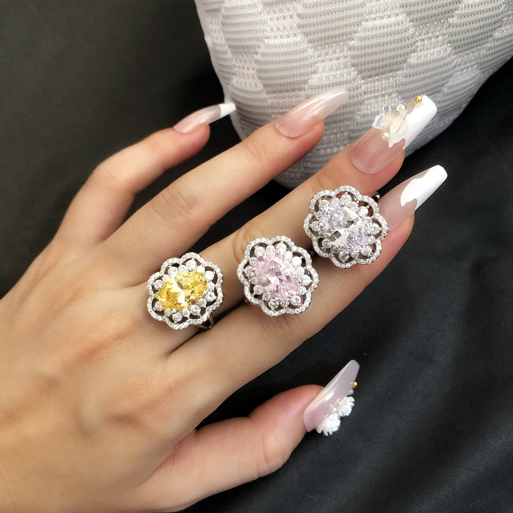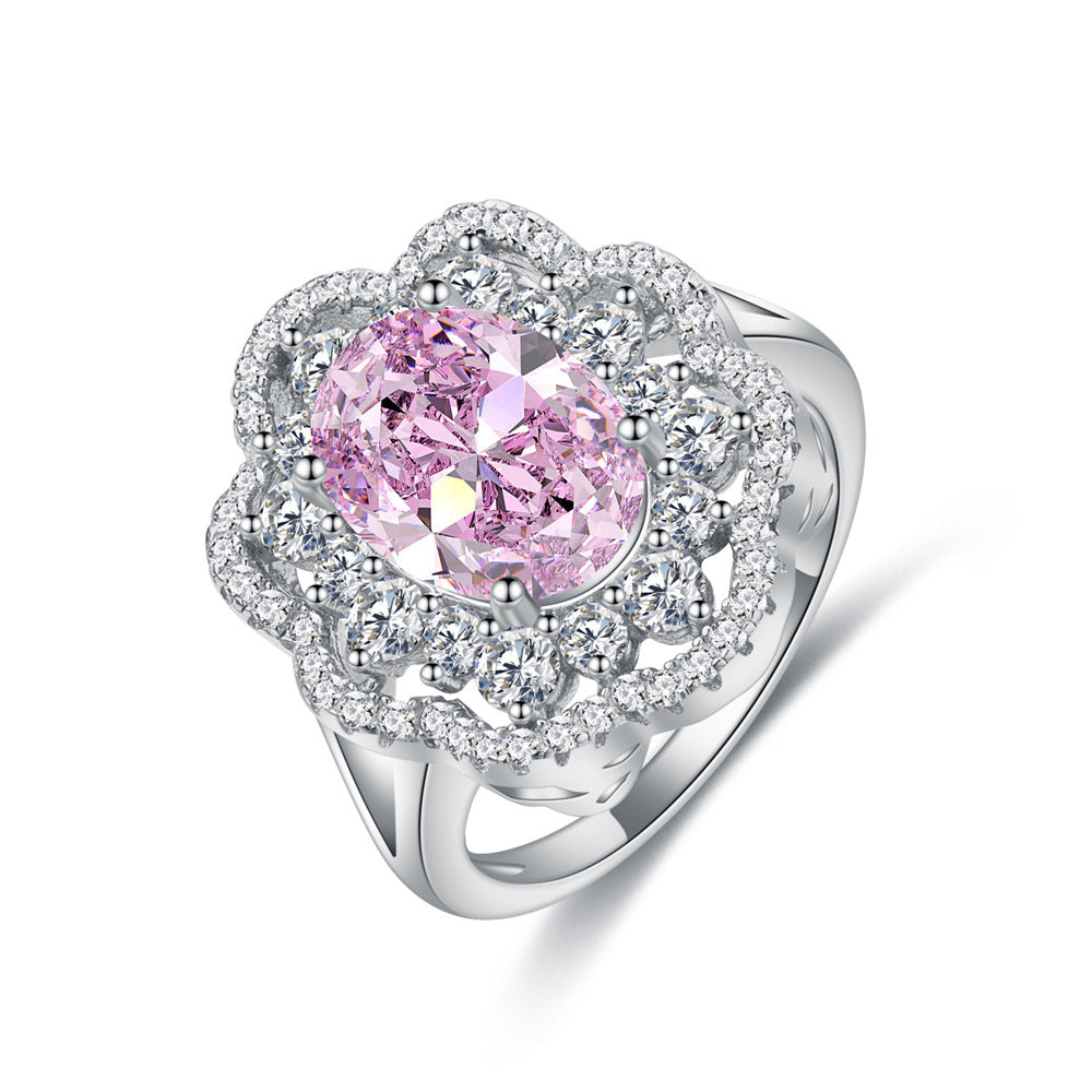 5.5ct egg-shaped 8 * 12 candy pink diamond 925 sterling silver ring women's European and American cross-border luxury inlaid high carbon diamond jewelry jewelry