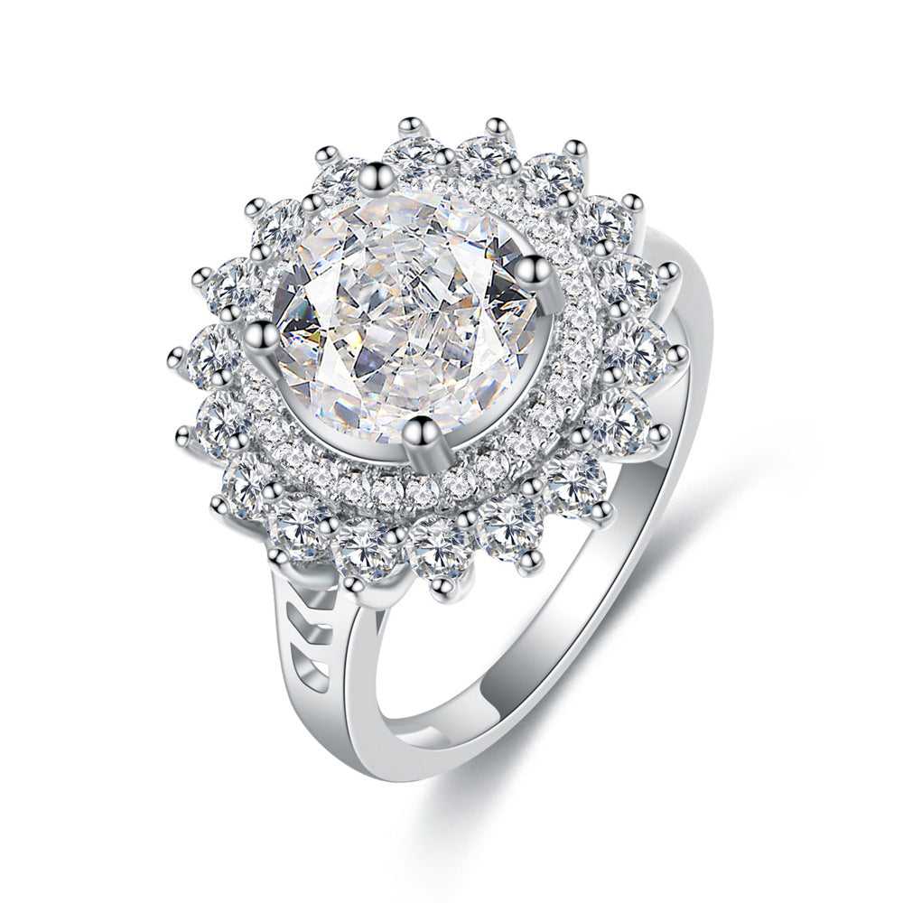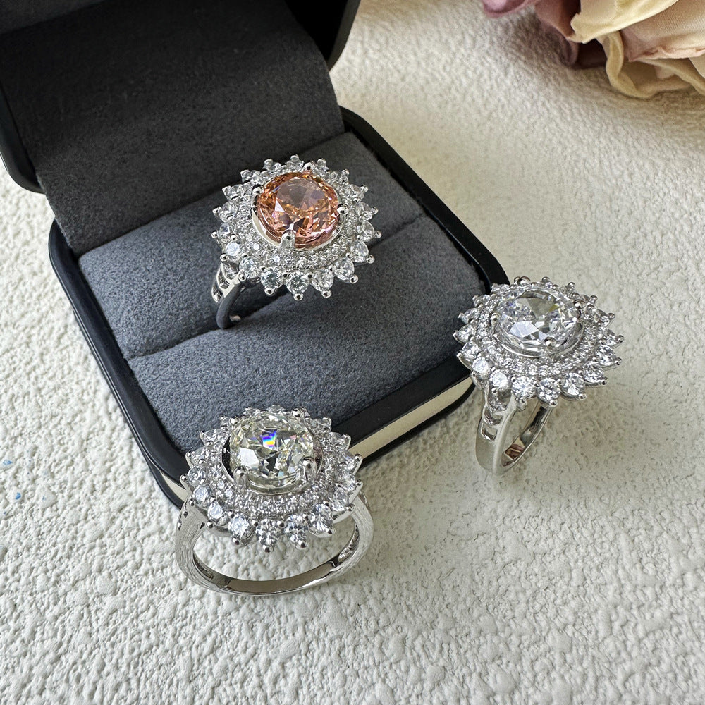5Ct Papalacha 8mm Round Ice Flower Cut High Carbon Diamond S925 Sterling Silver Ring Women's European and American Cross-border Jewelry Diamond Ring