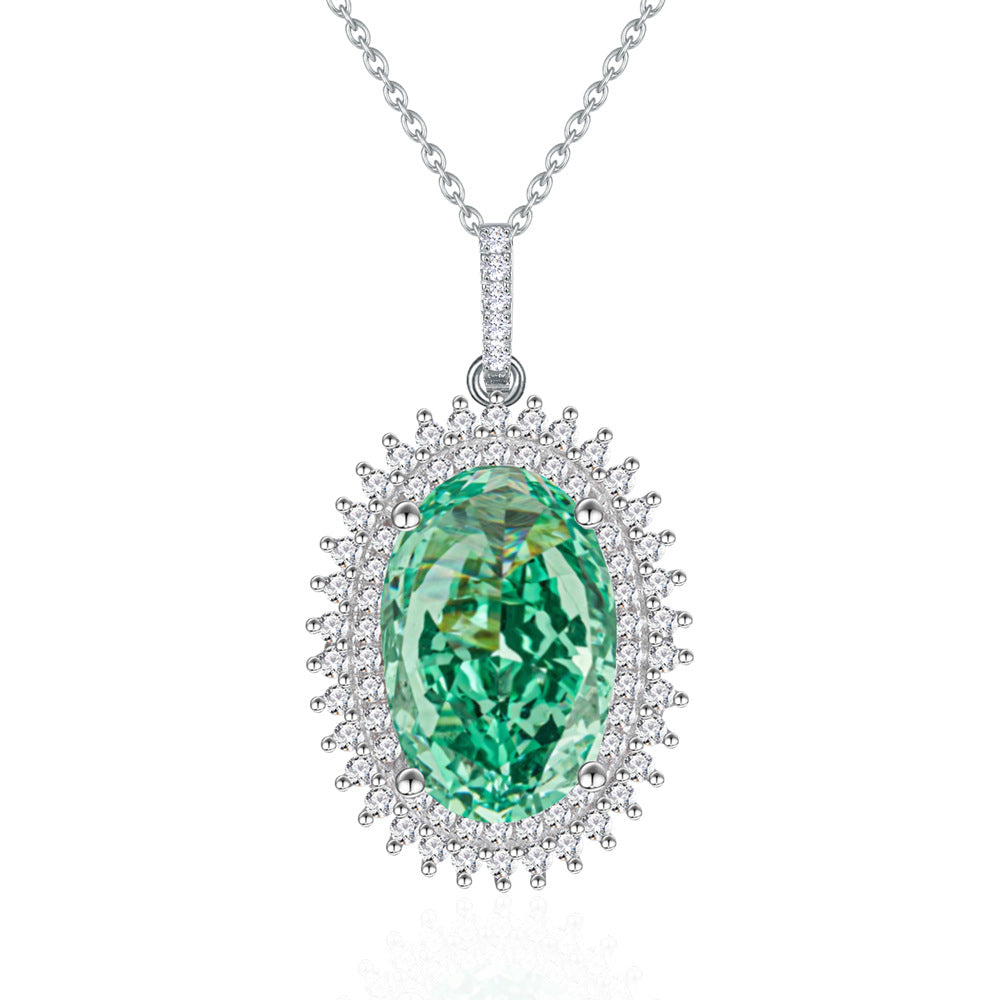 6.5 carat ice flower cut necklace 925 sterling silver Paraiba 8 * 12 egg-shaped pendant European and American cross-border hot-selling colored treasure