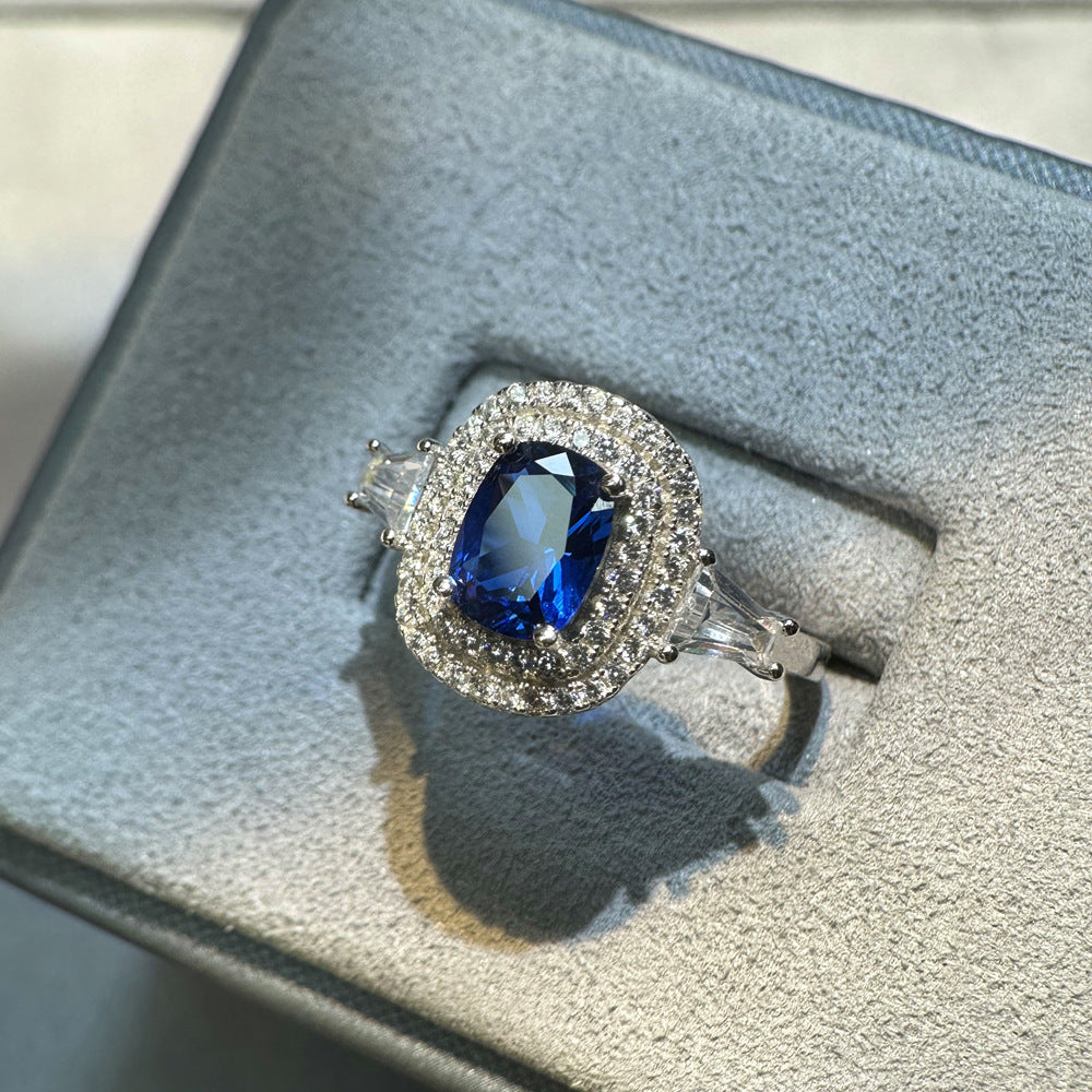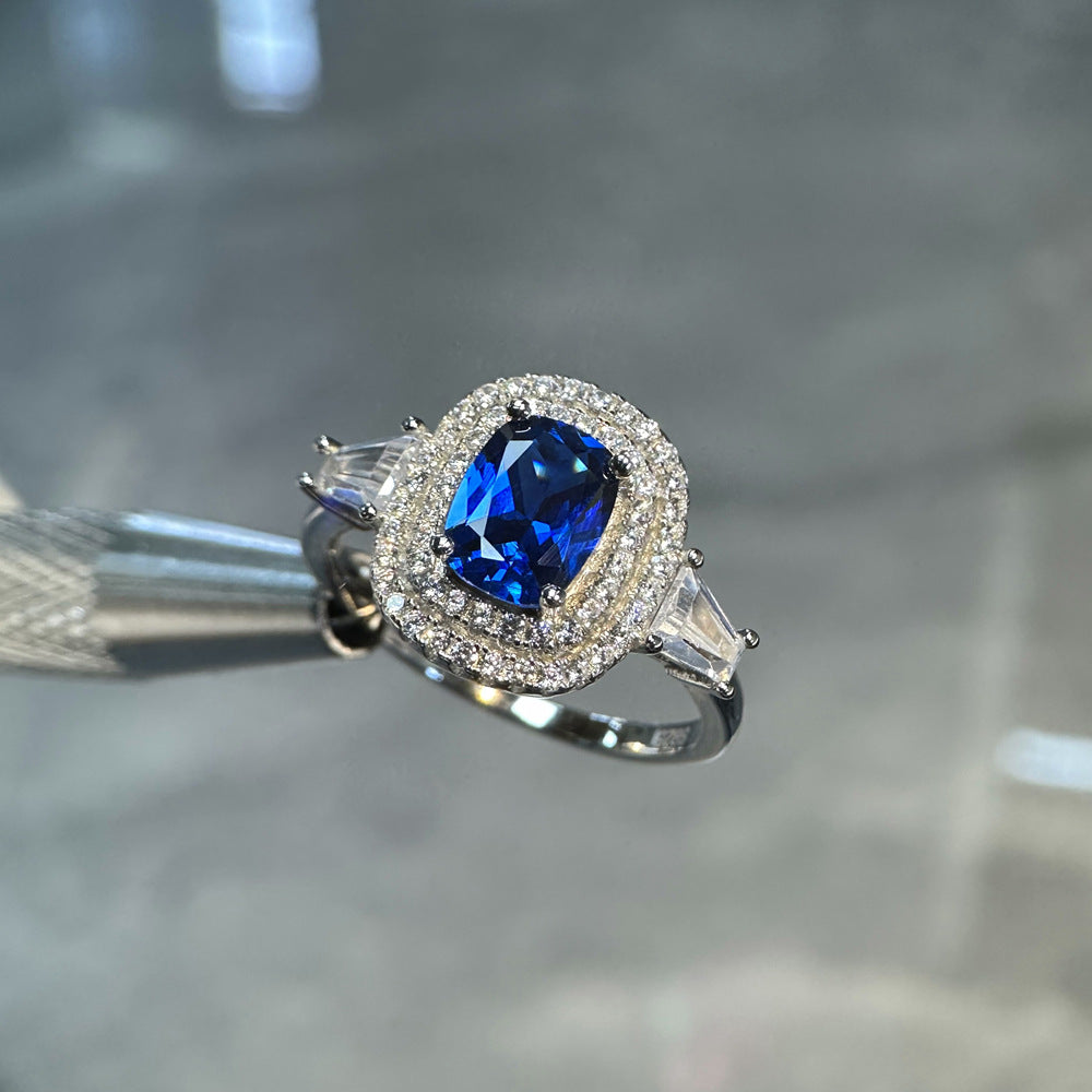 6 * 8 fat rectangular 1.4ct artificial sapphire sterling silver ring women's European and American cross-border light luxury high-end colored jewelry