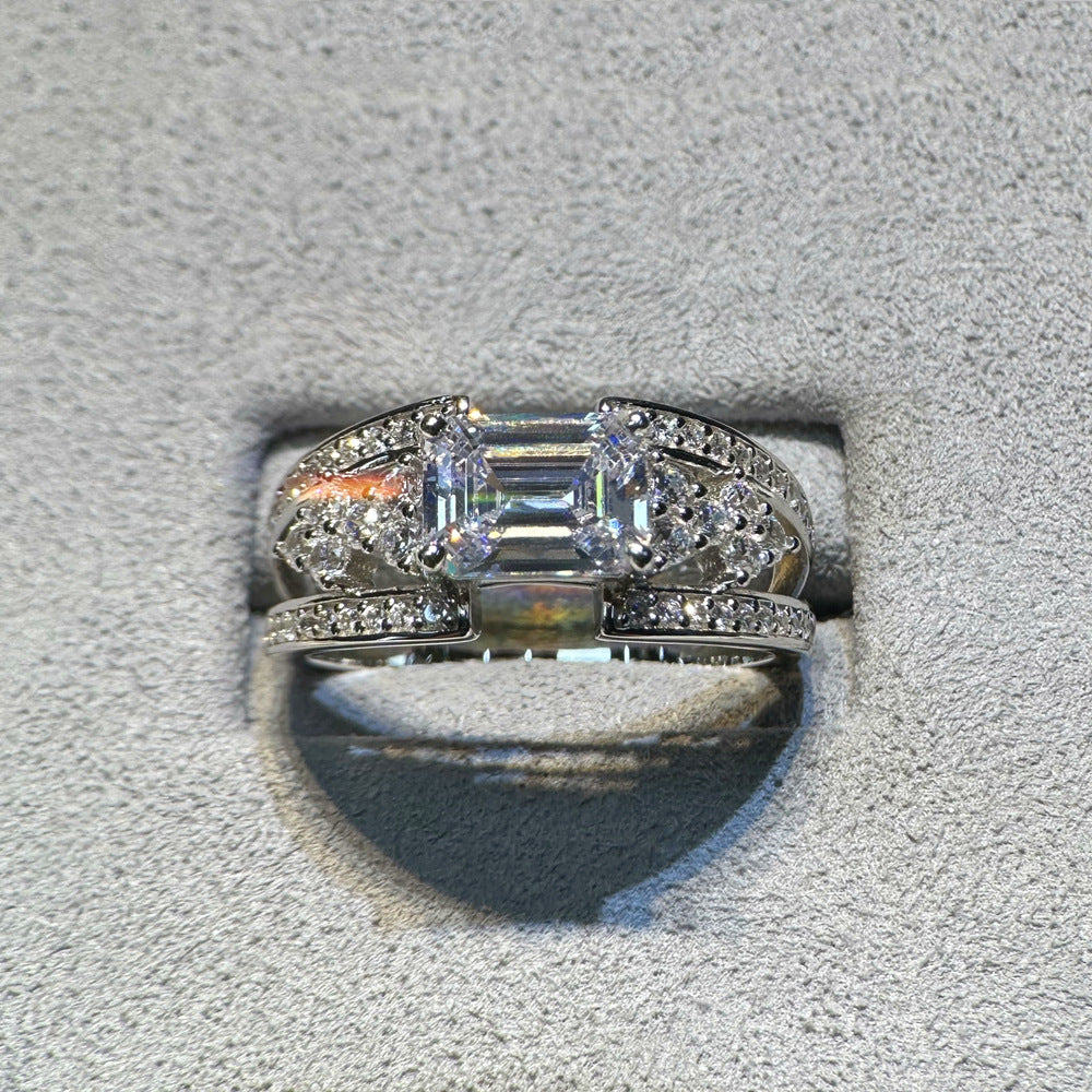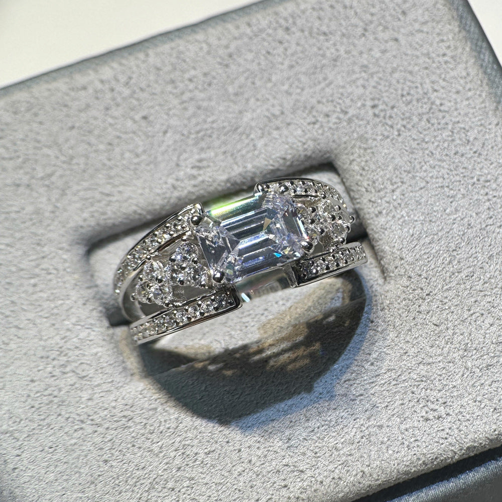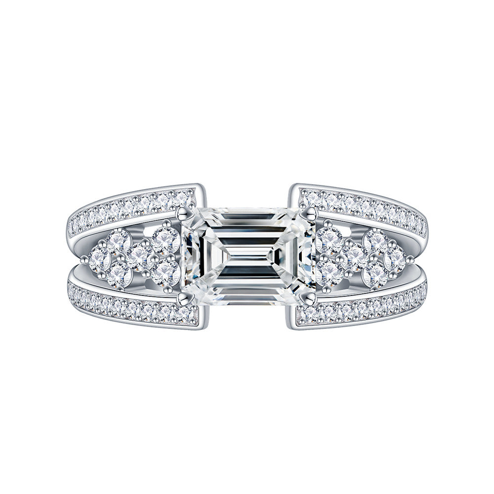 6 * 8 special-shaped Mozambican 2-carat S925 silver ring for women, European and American personalized design, light luxury live broadcast supply, jewelry wholesale