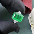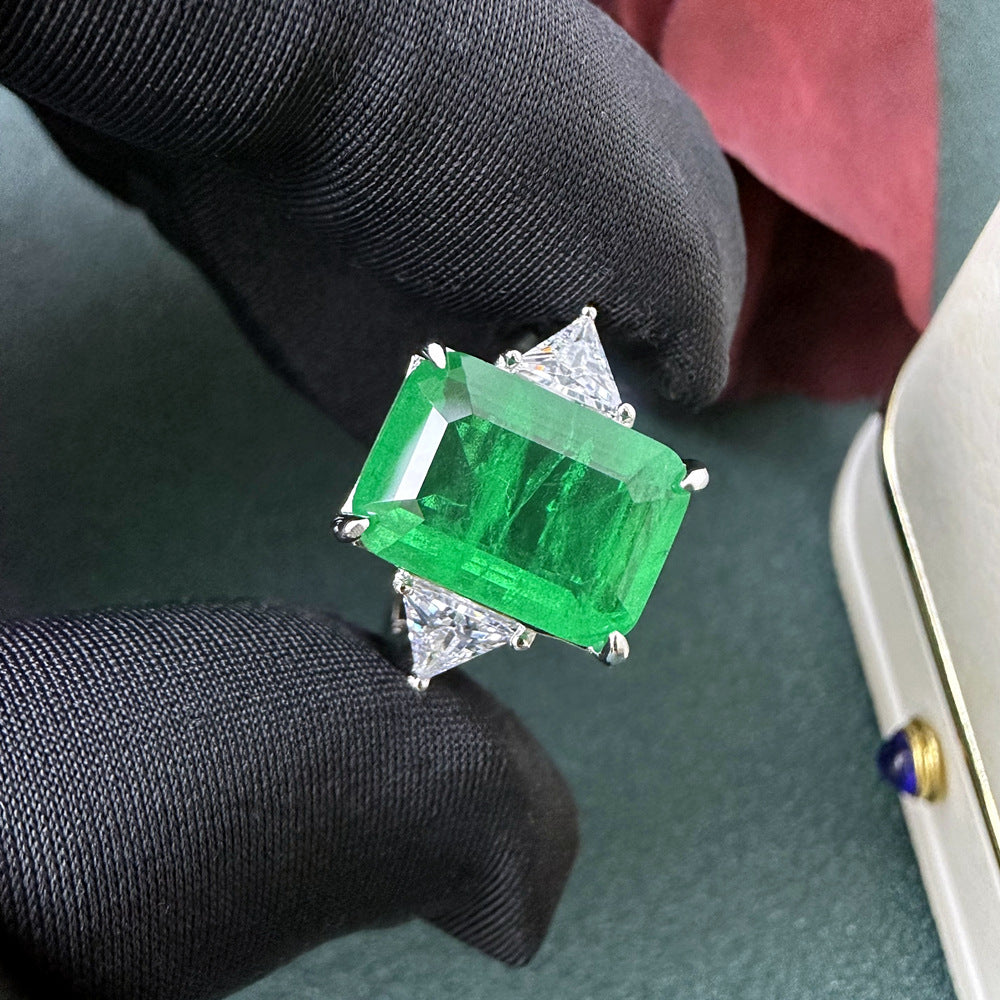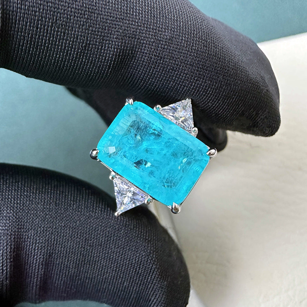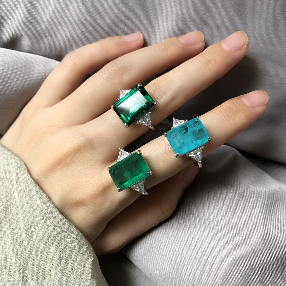 6 carat rectangular 10 * 14mm synthetic emerald Paraiba gemstone ring women's sterling silver European and American retro jewelry