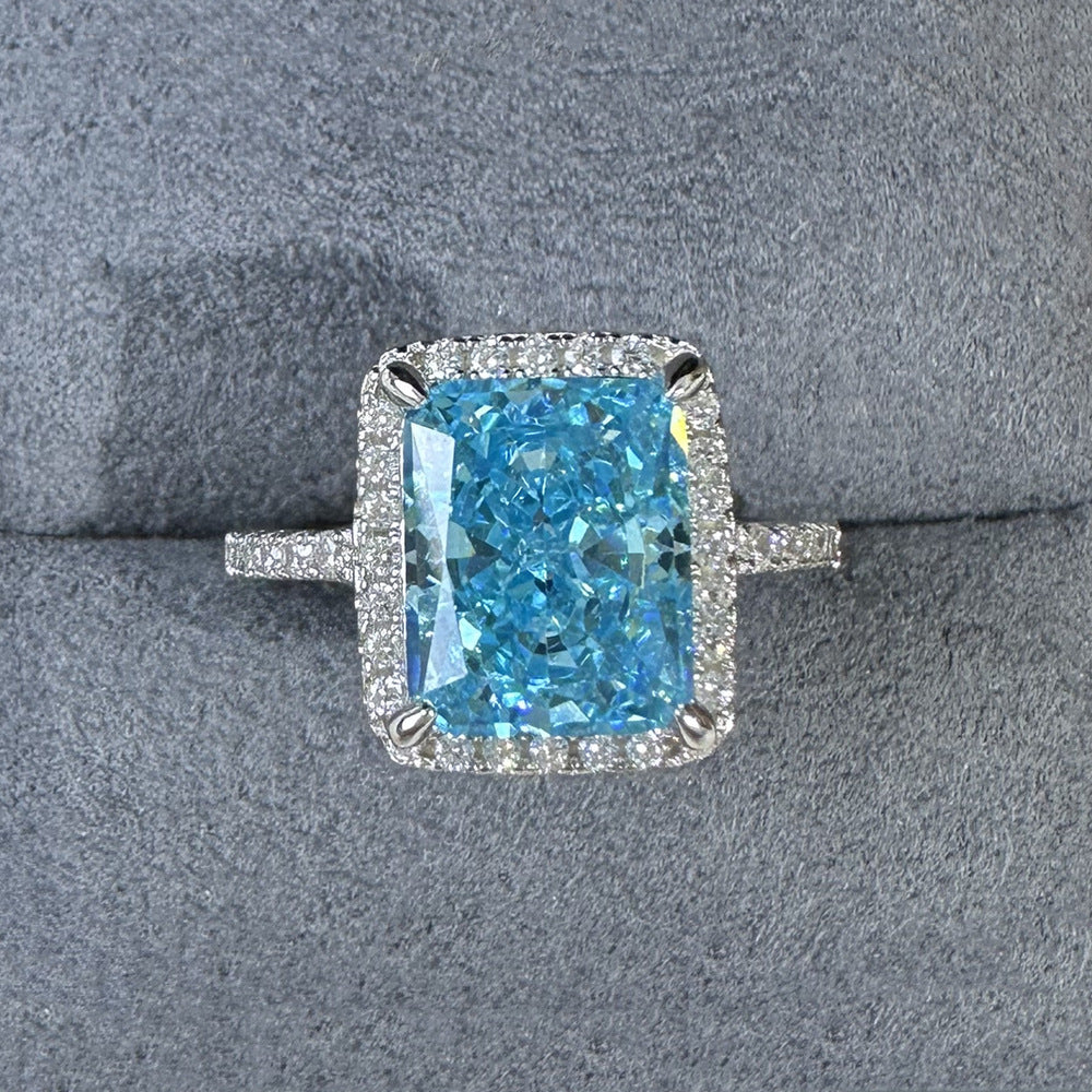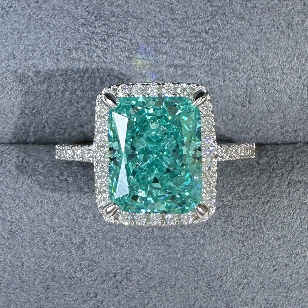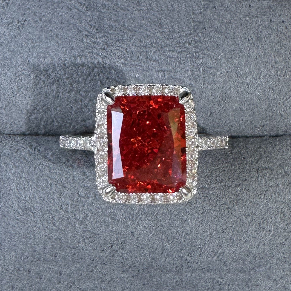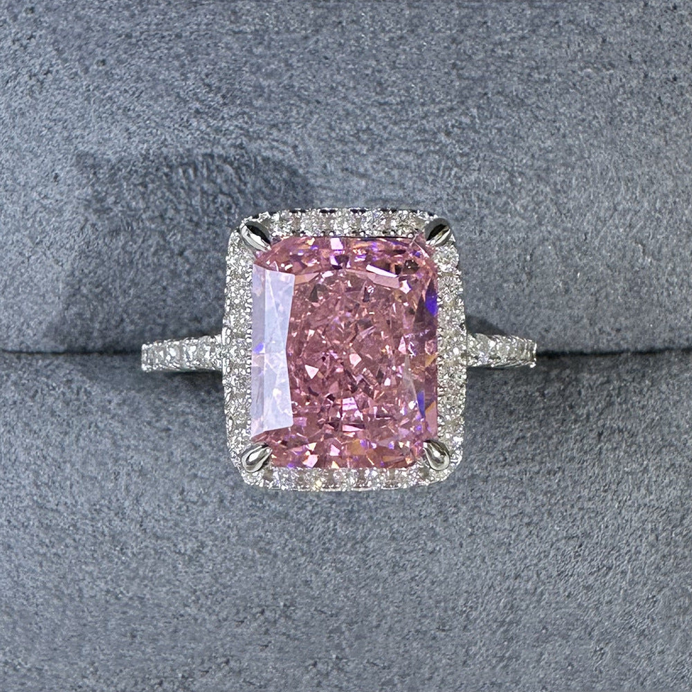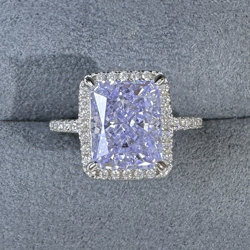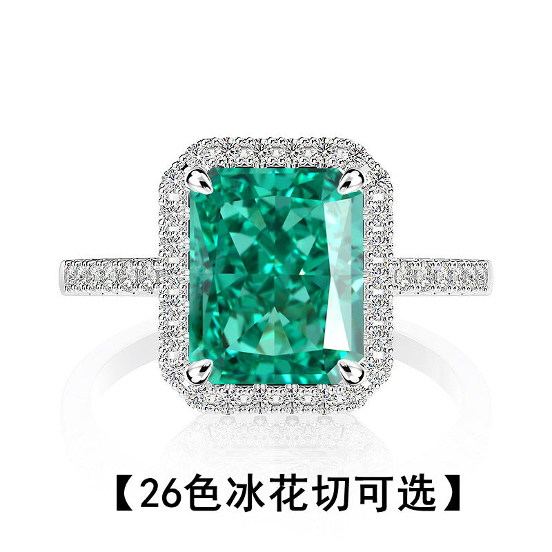 7 carat 26 color series ice flower cut high carbon diamond 925 sterling silver ring women's 8 * 10mm sugar cube diamond ring European and American cross-border