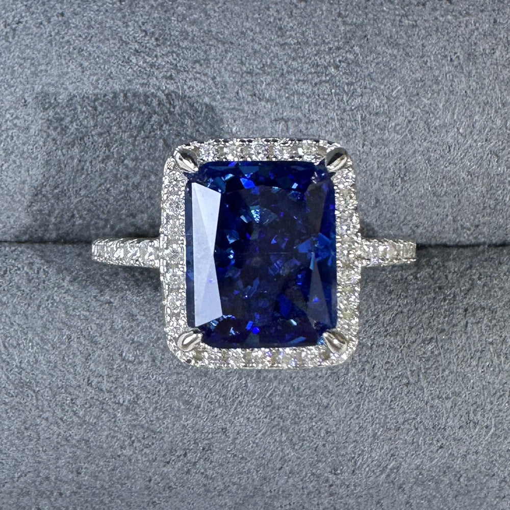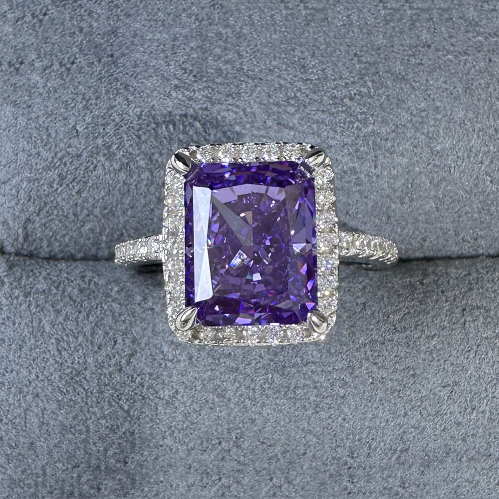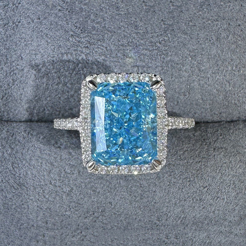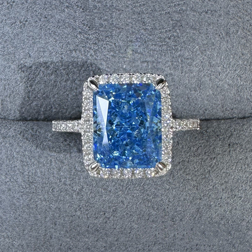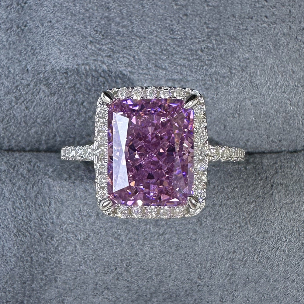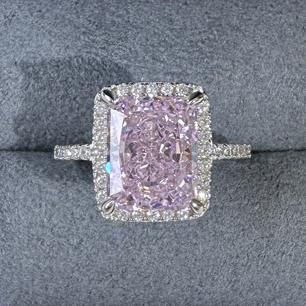 7 carat 26 color series ice flower cut high carbon diamond 925 sterling silver ring women's 8 * 10mm sugar cube diamond ring European and American cross-border