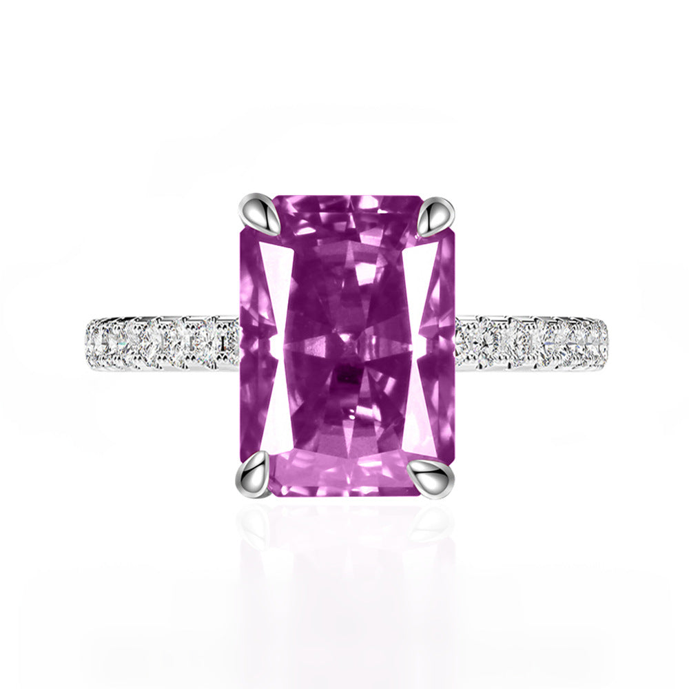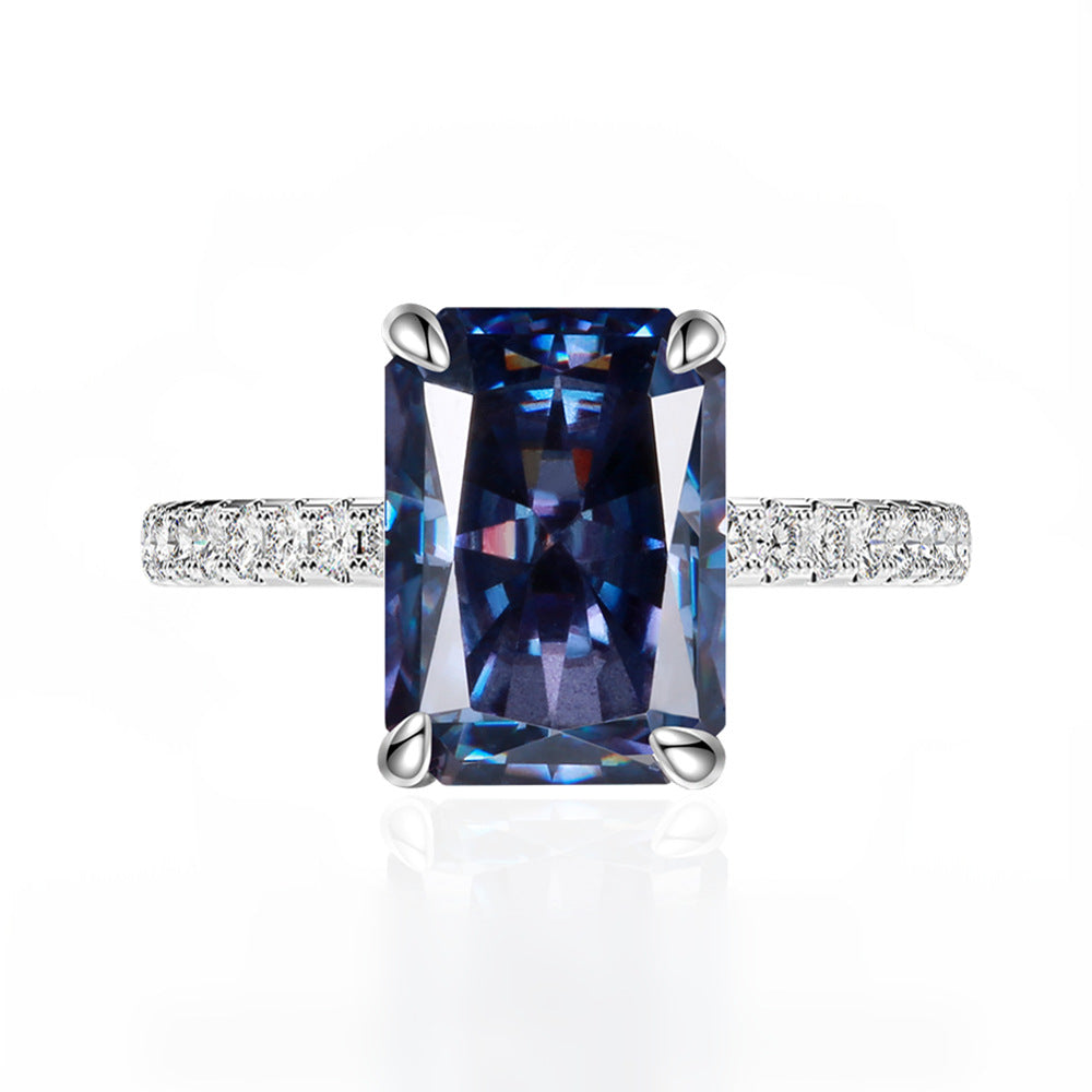 7 carat rectangular 8 * 10 ice flower cut deep tanzanite blue high carbon diamond 925 sterling silver ring European and American cross-border hot-selling jewelry