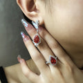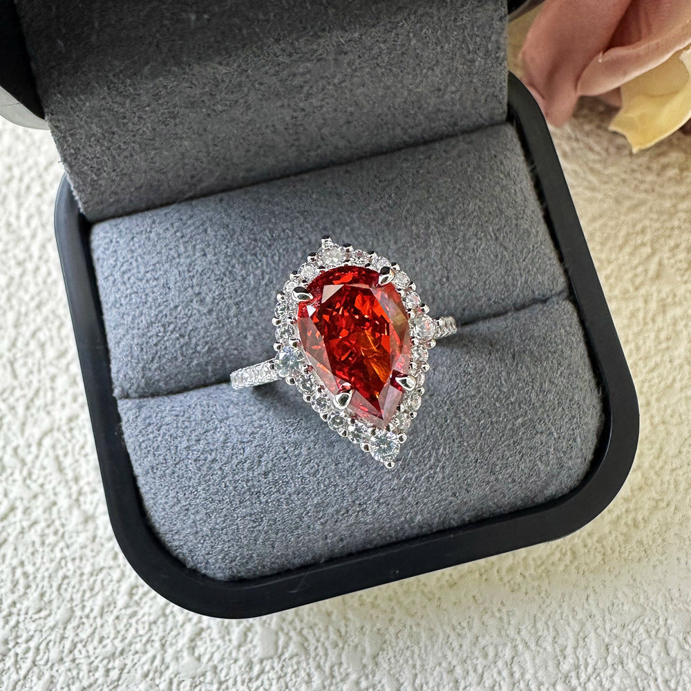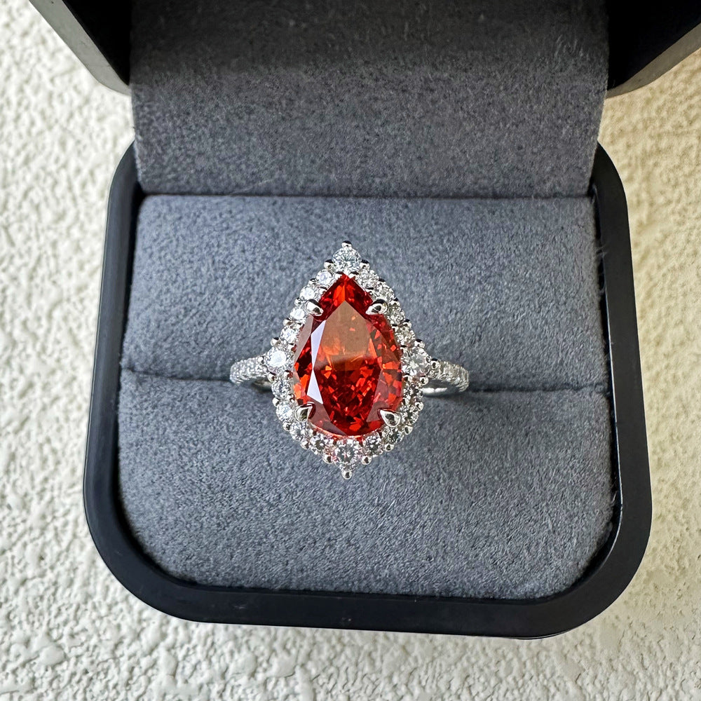 7ct ice flower cut 8 * 12 pear-shaped Padma red high carbon diamond S925 sterling silver ring female European and American cross-border ins wind