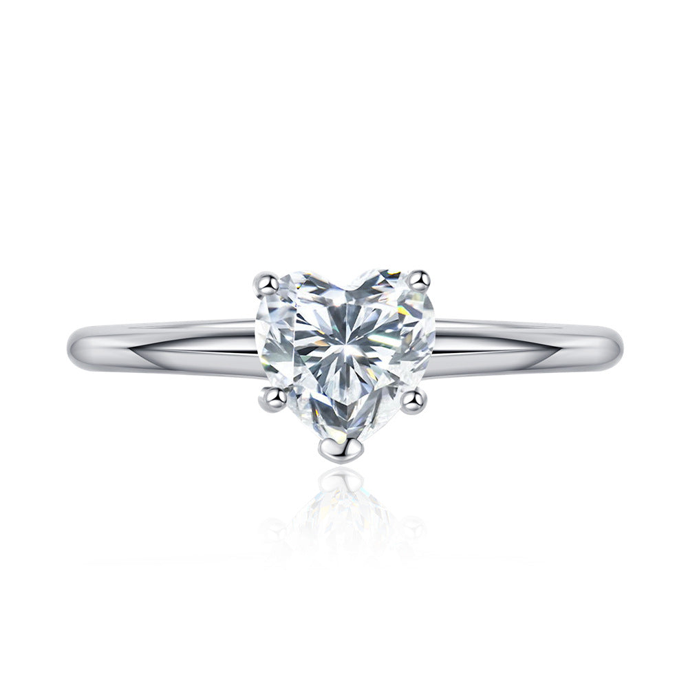 80 points 6 * 6mm peach heart moissanite diamond ring simple and versatile 925 sterling silver ring women's live broadcast hot sale factory direct sales