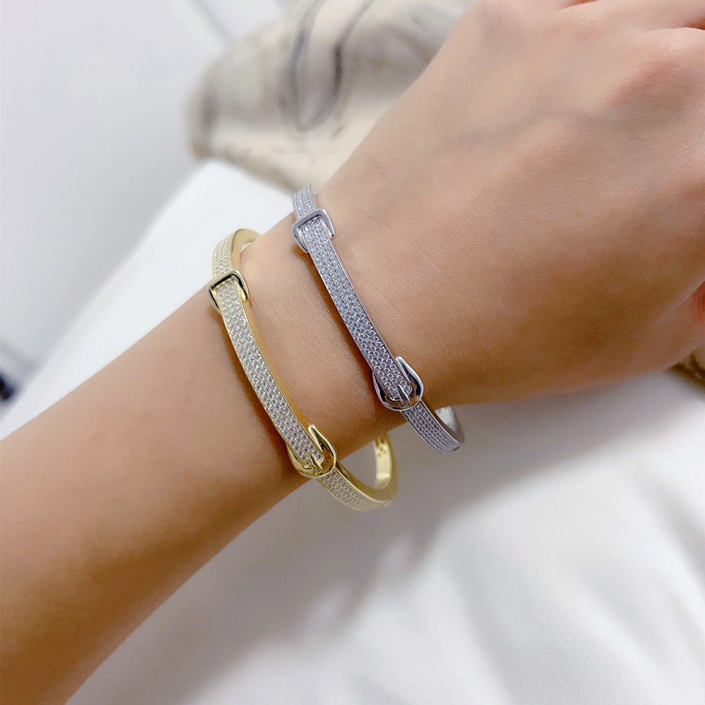 Belt buckle element diamond-encrusted gypsy star bracelet women's 925 sterling silver-plated 14k gold oval bracelet European and American cross-border foreign trade