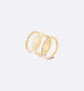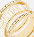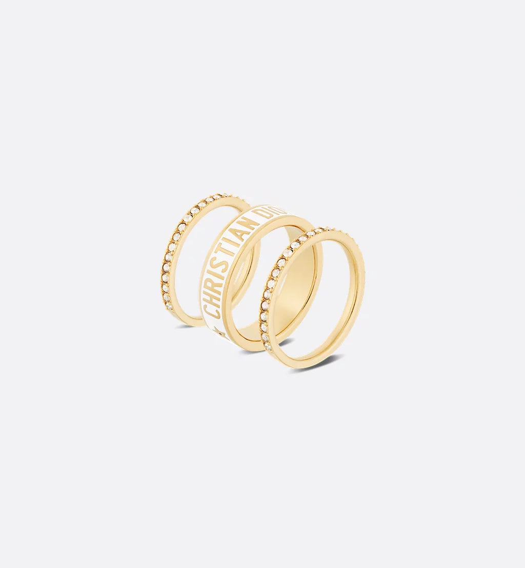This Dior Code ring set is a modern statement piece. Two of the slim gold-finish metal rings are pavé-set with silver-tone crystals, while the wider ring is embellished with white lacquer to highlight the Christian Dior signature. Pair with other Dior Code pieces for a matching look.