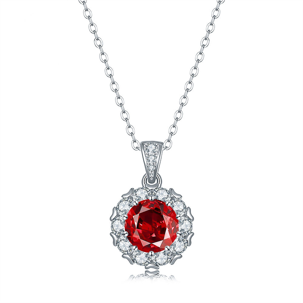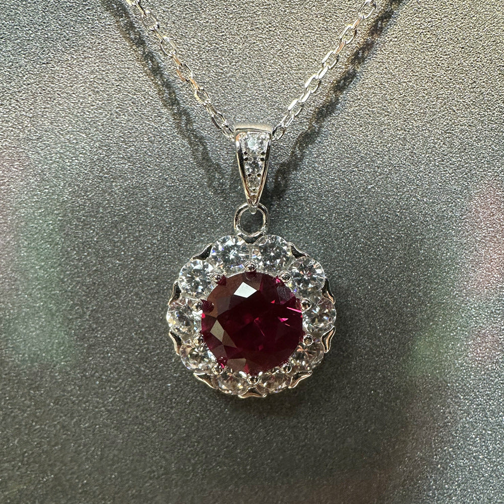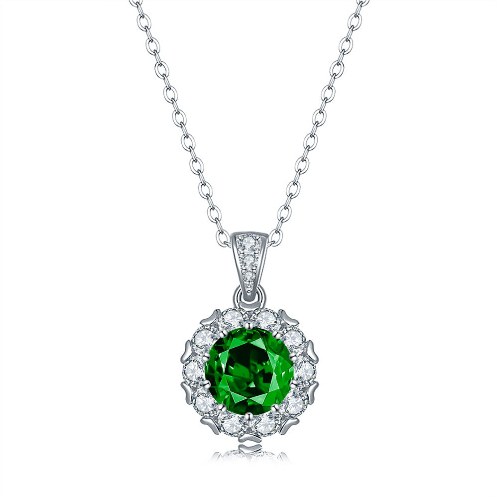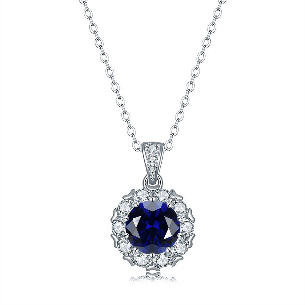 Douyin live stream hot-selling princess round bag full of diamond necklace women's S925 sterling silver colored zircon collarbone chain pendant simple